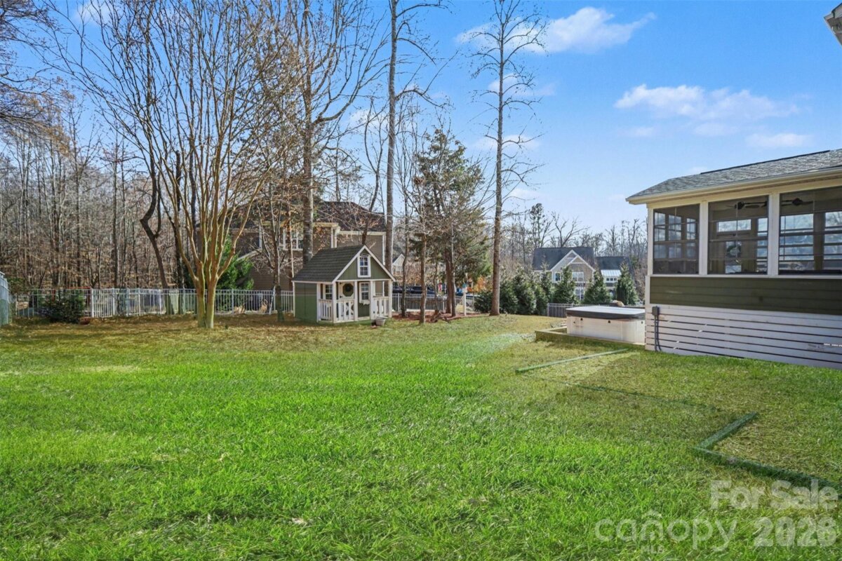 Distinctive home in Lawson! Located on a larger, corner lot, this home offers serene living off a quiet cul-de-sac with access to scenic walking trails. The fenced backyard - with screen porch, stone patio, and ample green space -has been lovingly improved and maintained by the current owners to celebrate our four-season Carolina climate/lifestyle. Inside the home, custom built-in cabinets, crown molding and a stone fireplace accentuate the open living area, which includes a gourmet kitchen w/ seating island and a large walk-in pantry; the living area and kitchen transition easily to the outside and are perfect for entertaining. Large primary suite is upstairs, with three other bedrooms, plus a bonus room/ 5th bedroom for comfort and versatility. Laundry room is conveniently located upstairs. New carpet and paint throughout; brand new water heater and closets installed by Closets by Design in the bedrooms maximize the storage space. Attached, two-car garage offers additional built-in storage as well. Dining Room chandelier does not convey; backyard hot tub and most furnishings are negotiable.