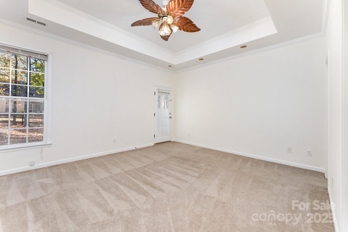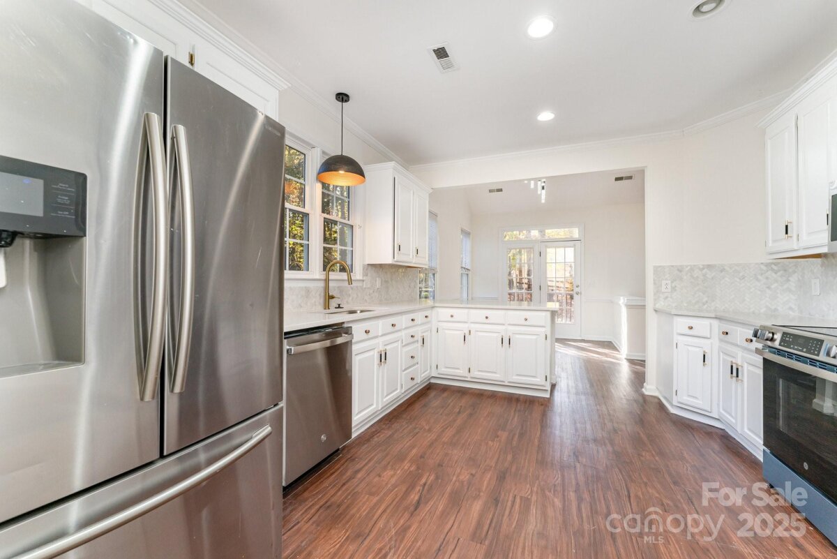 Beautifully updated two-story home on a quiet cul-de-sac! Step inside to a soaring two-story foyer and freshly painted interior that welcomes you with style and warmth. A private office with French doors provides the perfect work-from-home space, while the vaulted family room fills with natural light and opens seamlessly to the dining area—ideal for entertaining. The kitchen is a showpiece with new granite countertops, marble backsplash, stainless steel appliances, updated sink and faucet, and freshly painted white cabinetry offering ample storage. The primary suite on the main floor features a tray ceiling, walk-in closet, and spa-like bath with dual vanities, soaking tub, and separate step-in shower. Upstairs offers spacious secondary bedrooms and a versatile bonus room that can be used as an additional bedroom, media room, or playroom. Enjoy the outdoors in your fenced backyard with a screened-in patio and extended deck—perfect for gatherings or quiet evenings. Updates include new HVAC (2024), roof (2018), and new fans, chandeliers, and light fixtures throughout. Fantastic location close to Target, dining, I-77, and just minutes from Birkdale Village. Move-in ready, beautifully refreshed, and perfectly situated—this home combines timeless design, modern upgrades, and an unbeatable setting.