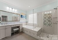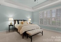 Welcome to this impeccably maintained home in sought-after Ballantyne. The main level features a spacious primary suite with updated bath, custom closets and new carpet, plus a newly carpeted secondary bedroom and full bath — ideal for guests or multigenerational living. The open floor plan offers a two-story great room with fireplace and is open to the kitchen, which has been updated with GE Café appliances and freshly painted cabinetry. Plantation shutters throughout the home and refinished hardwood floors on the main level add timeless character. The four-season room with Trex flooring (2023) overlooks the beautifully landscaped backyard. Additional outdoor upgrades include a Trex deck (2023), privacy wall, and custom stamped concrete patio and walkway-creating a private outdoor retreat. Upstairs includes a home office with walk-in storage, three additional bedrooms (one with ensuite bath and large walk-in closet with direct access to attic storage), a spacious bonus room with two storage areas, a large walk-in linen closet, and pull-down attic access. Located on the corner of a cul-de-sac in The Vineyard, this home offers exceptional convenience to Ballantyne’s newest amenities, including the upcoming Wegmans grocery store and the Ballantyne Bowl with dining, green space, and a concert venue. Improvements and updates are too numerous to list — see attached feature sheet in MLS for details.