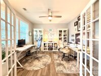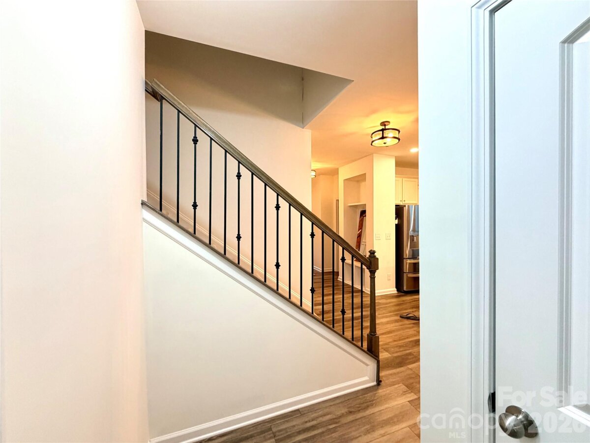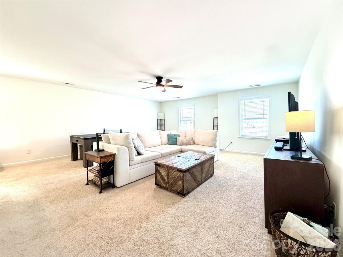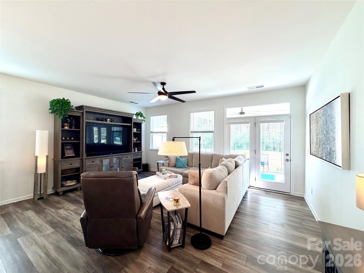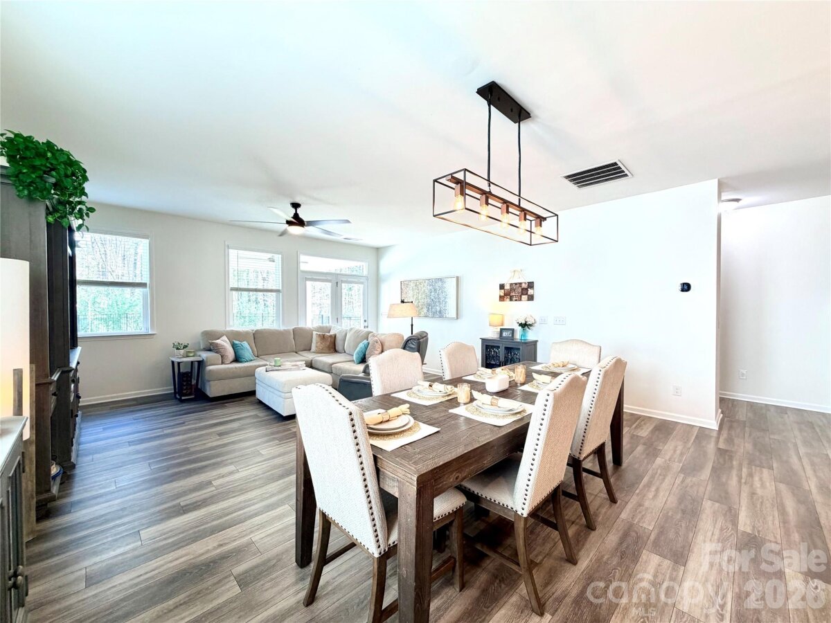 Welcome to an exceptional opportunity in the highly sought-after Magnolia Walk community, ideally located just minutes from the heart of Huntersville. Enjoy effortless access to I-77, I-485, and all the dining, shopping, and lifestyle conveniences the area has to offer. Built in 2020 and meticulously maintained, this stunning 4-bedroom, 3.5-bath residence offers the perfect blend of modern design, functionality, and upscale comfort. From the moment you enter, you’re greeted by an abundance of natural light and a thoughtfully designed open-concept layout enhanced by beautiful luxury vinyl plank flooring throughout the main level. The chef-inspired kitchen is both stylish and functional, featuring granite countertops, stainless steel appliances, a spacious walk-in pantry, and seamless flow into the main living and dining areas—ideal for both everyday living and entertaining. The main-level primary suite serves as a private retreat, complete with a generous walk-in closet and a well-appointed en-suite bath. A versatile flex space near the entry offers endless possibilities—perfect for a home office, fitness area, or elegant sitting room—while a convenient drop zone and laundry room add to the home’s practical appeal on the main level. Upstairs, an expansive loft provides an incredible secondary living space, ideal for entertaining, relaxing, or creating a media or game room. Three generously sized bedrooms and two full baths—including an additional en-suite—offer comfort and privacy for family and guests alike. Step outside to your private outdoor oasis, featuring a covered patio and an extended custom paved patio overlooking a fully fenced, wooded backyard—perfect for entertaining or unwinding in a serene setting. Residents of Magnolia Walk enjoy access to an open community space for gathering, a scenic walking trail leading to Huntersville Family Fitness & Aquatics, further enhancing the lifestyle this community provides. This is a rare opportunity to own a such a home office a quiet street that perfectly combines location, luxury, and livability. Video tour available!