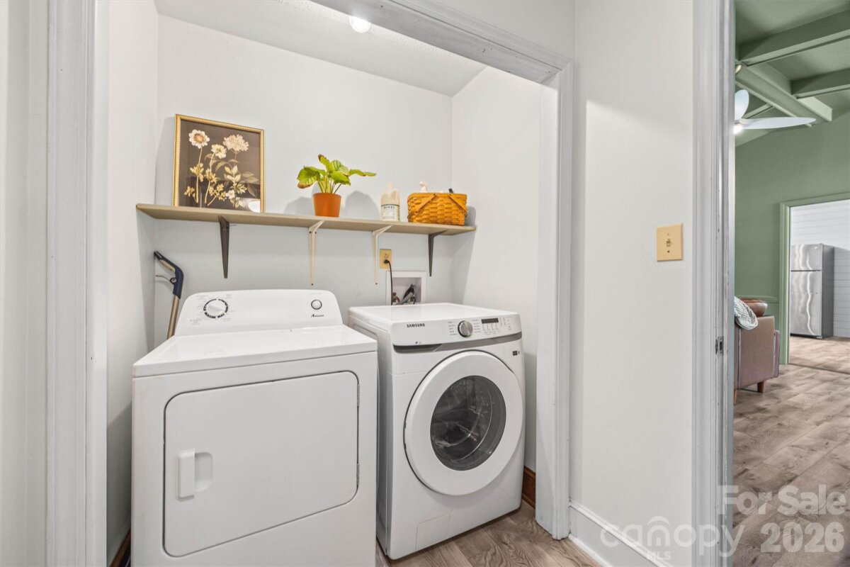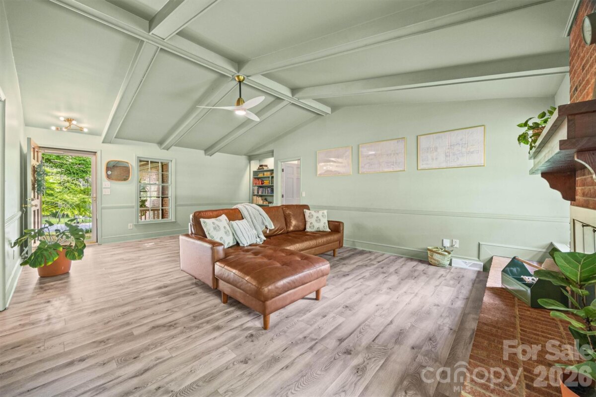 Beautifully updated ranch on a rare, near-acre corner lot in the heart of Farmwood! This home offers seamless one-level living with stylish mid-century modern touches, including a renovated kitchen and baths, fresh color-drenched paint, durable new flooring throughout and new fixtures. The primary suite serves as a true retreat with a private ensuite and walk-in closet. Outside, the property is a gardener's dream, boasting mature magnolias, Japanese maples, and thousands of spring bulbs. The heart of the home is the vaulted great room with gorgeous beams and an elegant fireplace, while the charming kitchen features open shelving and a versatile bonus room—perfect for a home office or an expansive walk-in pantry. Savor the peace of Mint Hill with an easy commute to Charlotte. Enjoy the close proximity to Irvins Creek Greenway, a 1.5 mile trail connecting Idlewild Rd to Sam Newell Rd. New roof in 2022. All appliances convey.