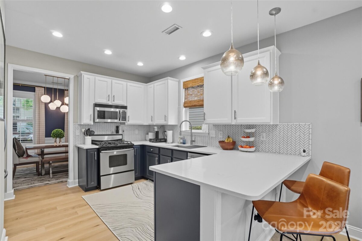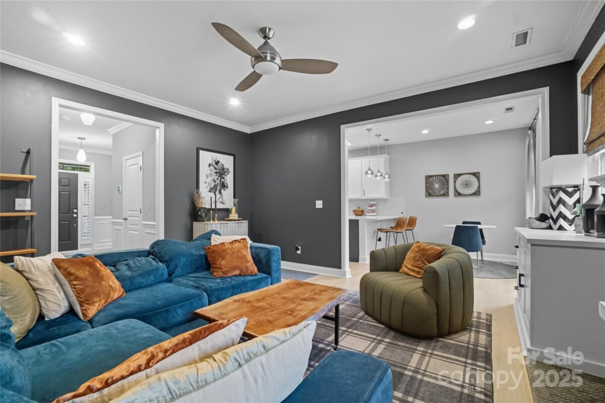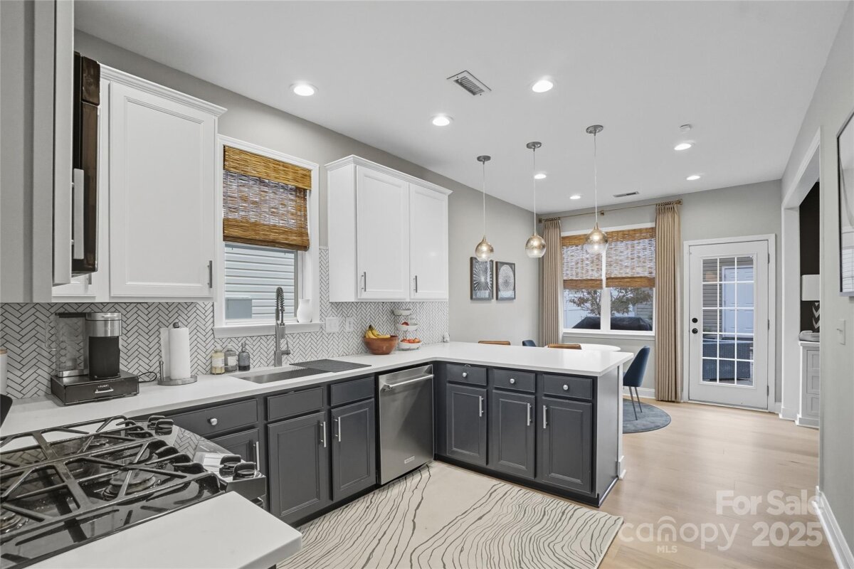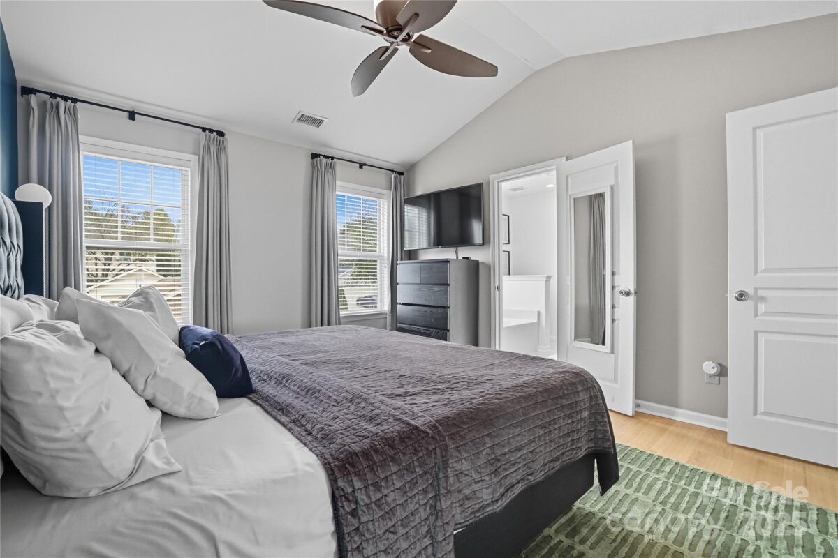 This beautifully maintained home on a corner lot is move-in ready and full of thoughtful upgrades inside and out. New HVAC!! Manufactured hardwood floors throughout, a spacious dining room with designer lighting, and custom window treatments, plus a cozy living room with crown molding, a gas fireplace, media cabinet, and tall ceilings. The kitchen is a true highlight with granite countertops, tile backsplash, stainless steel appliances including a gas range, pendant and recessed lighting—perfect for both everyday living and entertaining. Upstairs, large primary suite with vaulted ceilings and custom fixtures. The remodeled primary bath includes an upgraded tiled shower with a semi-frameless glass door. Additional attic storage with easy access. Outside, the backyard oasis features a 6-ft privacy fence, professionally installed concrete pavers, lush landscaping, a tranquil waterfall feature, and a storage shed. NO grass to cut in back as the yard is astroturf! The detached garage is insulated, drywalled, and ideal for a workshop or studio. All of this in the desirable Caldwell Station neighborhood, known for its charm and community feel. Five minute walk to the community pool center! This one won’t last!