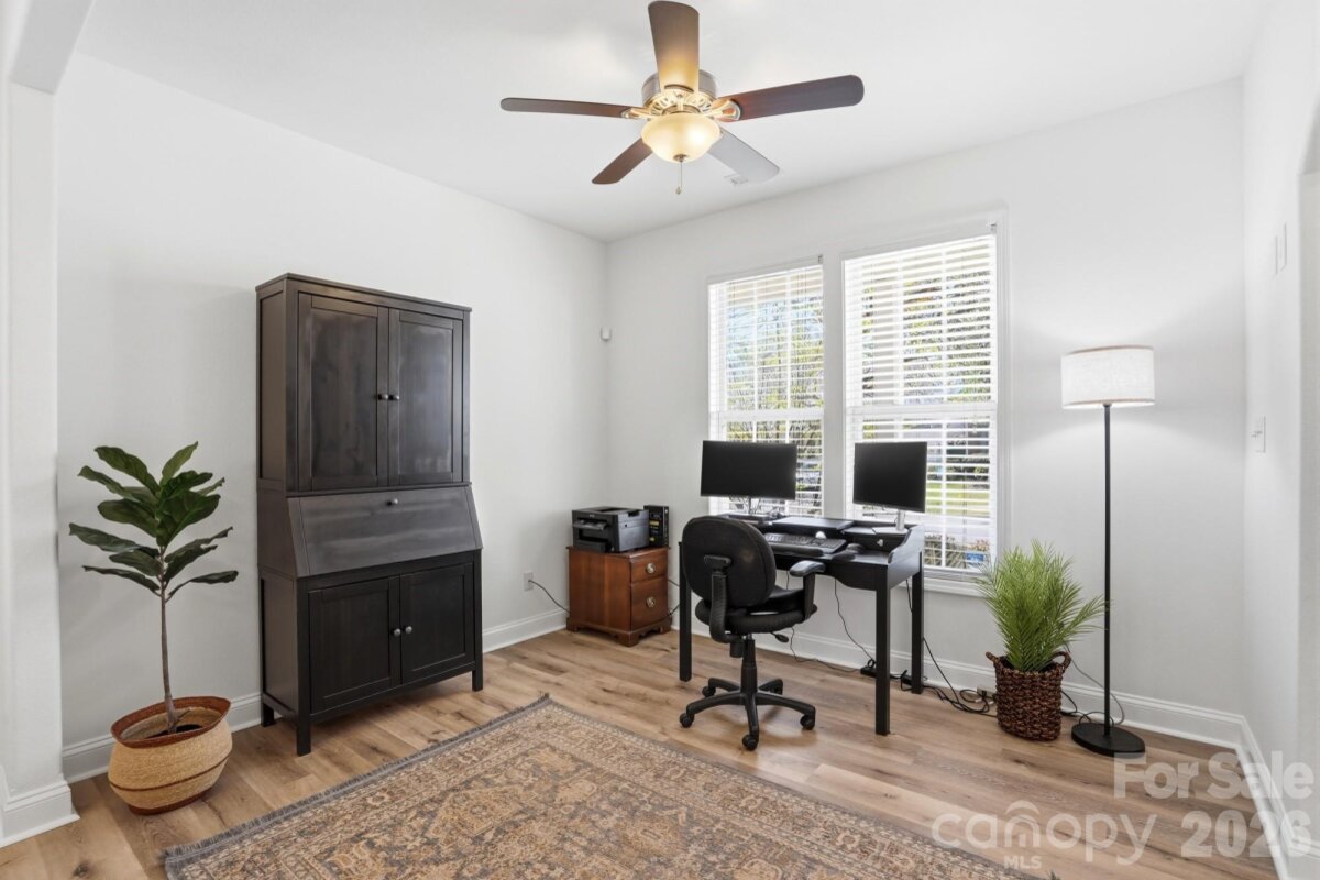 Welcome home to this beautifully maintained two-story residence with full walk-out basement that blends comfort, functionality, and timeless appeal located in the highly desirable and amenity rich community of Highland Creek! From the moment you arrive, you’ll be drawn in by the inviting curb appeal, complete with a charming covered front porch perfect for morning coffee or unwinding at the end of the day. Step inside to find a bright and open layout filled with natural light and thoughtfully designed living spaces. Freshly painted and with new laminate vinyl plank flooring installed throughout the main level, it offers a versatile front room ideal for a formal dining area, home office, or flex space to suit your needs. The spacious living room, which receives a bevy of natural light from the bank of windows that frame it with views of the backyard, features a cozy gas fireplace and flows seamlessly into the kitchen, creating the perfect setup for both everyday living and entertaining. The kitchen is well-appointed with stainless steel appliances, including a French door refrigerator, ample cabinetry, generous counter space, and a functional layout that makes meal prep a breeze. An adjacent breakfast nook provides a comfortable setting for gatherings and overlooks the backyard while also offering direct access to the back deck. Upstairs, you’ll find generously sized bedrooms, including a relaxing primary suite with vaulted ceilings, abundant natural light, and a private, updated en-suite bath which includes a double vanity, beautifully tiled walk-in shower and separate soaker tub for a retreat style feel. The perfect place to relax after a long day! Additional bedrooms offer flexibility for family, guests, or workspace needs. The fully finished basement expands your living space even further, offering endless possibilities. Whether you envision a media room, home gym, playroom, or guest retreat, with additional rooms and a beautifully updated bathroom, this level provides both comfort and versatility. Step outside to enjoy a spacious backyard complete with an elevated deck perfect for grilling, entertaining, or simply enjoying the peaceful surroundings. The yard offers plenty of room for outdoor activities and is complemented by mature trees across the back that provide both privacy and charm. The community offers four swimming pools, walking trails, pickle ball courts, basketball courts, two clubhouses, a workout facility, a nine hole disc golf course and an 18 hole championship golf course (separate optional membership from the HOA). This particular home is on the Cabarrus County side of the community and therefore attends Cabarrus County Schools. Conveniently located near shopping, dining, and major commuter routes, this home offers the perfect combination of comfort, space, and location. Don’t miss your opportunity to make it yours!