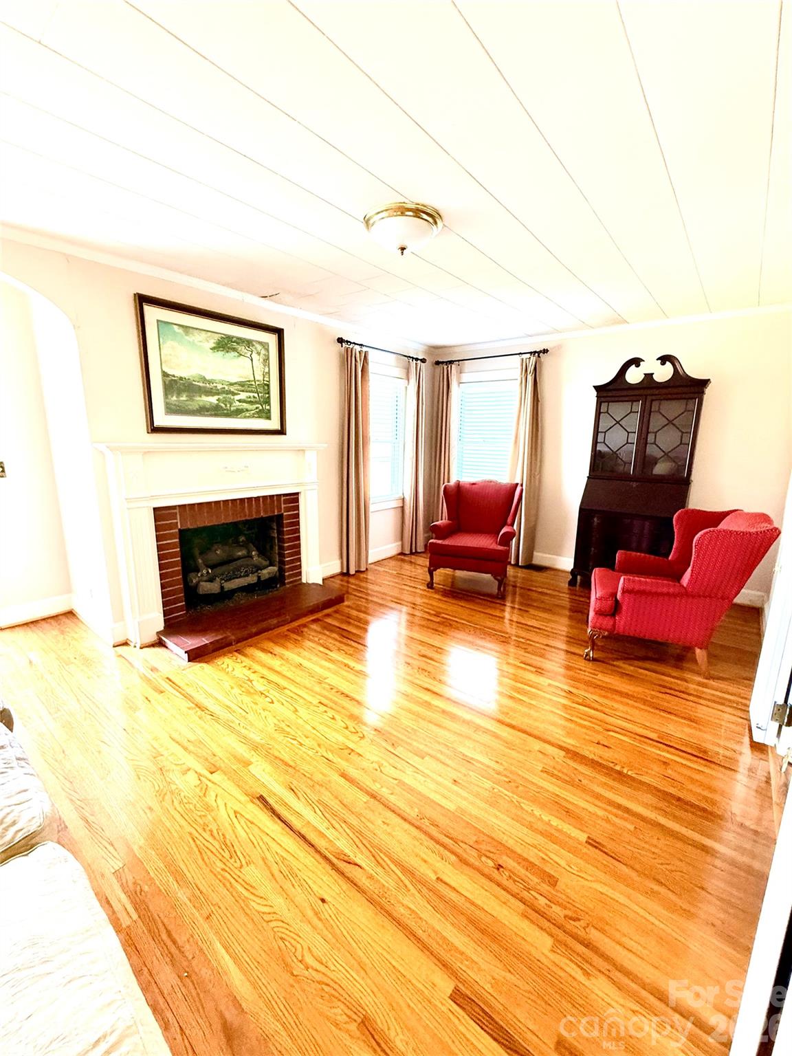 Welcome to this charming cottage nestled in the quaint town of Oakboro, where small-town-living meets timeless character. This beautiful 4 bedroom, 2 bath 11/2 story home offers warmth, space and unique details throughout. The formal living rm, complete with a cozy fireplace and gas logs, flows seamlessly into the dining room-perfect for gatherings and everyday living. A cozy family room features stunning Juniper wall paneling, hand-hewn in Brunswick County, adding a one-of-a kind rustic touch. Enjoy year round relaxation in the bright sunroom overlooking the large corner lot. The home also features hardwood floors throughout with tile in the kit, sunroom and baths. The spacious primary bedroom includes a walk-in closet, while a large linen closet is conveniently located just outside the bright full bath.Storage is abundant throughout the home. Upstairs you will find two generously sized BR's-one with a built-in desk and one with built in bookshelves along with a full bath that comfortable serves the upper level. Located in a golf cart friendly community you can easily ride into town to enjoy local restaurants, the grocery store, pharmacy and a charming park with a scenic walking trail. This home is truly special and deeply rooted in the heart of Oakboro Its more than just a house, it's part of the town's story!!!!