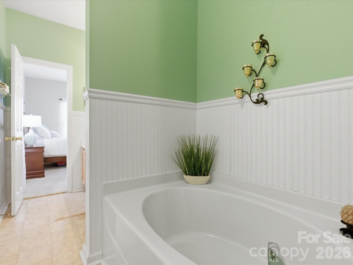 Charming move-in-ready 4BR/2.5BA two-story home on a quiet cul-de-sac in the desirable Oakstone neighborhood. Open living/dining with cathedral/vaulted ceilings, ceiling fan, large gas fireplace with decorative mantel, and updated flooring (laminate wood and carpet, with vinyl in full bathrooms). Main-level primary suite features ceiling fan, dual sinks, a soaking tub, separate shower, and large walk-in closet. A cozy kitchen looks out onto the back yard, and features updated backsplash and countertops. Upstairs are 3 additional bedrooms, a full bathroom and laundry. French doors open from dining area to patio and the large fenced back yard, a great space for entertaining, gardening and R&R. Convenient to shopping, dining, schools, Hwy 74 and I-485. A 20' public storm drainage easement exists along the back left to far back right portion of the back yard. See Survey in attachments. Attic is access-only.