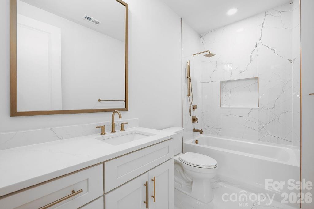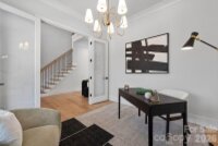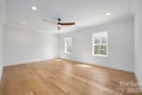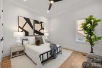 Introducing the newest residence in the Northway Homes Signature Series, a collection of luxury new-construction homes throughout Charlotte. Located in a highly desirable neighborhood in South Charlotte, 100 N Brackenbury Lane offers elegant design, high-quality construction, and modern livability in a peaceful, established setting with convenient access to major roadways, shopping, and top-rated public and private schools. A covered front porch and dramatic two-story entry welcome you into the main level, where an open-concept layout seamlessly connects the living room, dining area, and chef’s kitchen. The living room is anchored by a fireplace and ceiling fan, creating a warm and inviting gathering space, while the kitchen impresses with floor-to-ceiling cabinetry, quartz countertops with a full backsplash, stainless steel appliances, a wine cooler, and designer lighting throughout. An office just off the foyer offers a quiet work-from-home retreat, while a main-level guest bedroom with custom closet shelving and a full bath provides flexibility for visitors or multi-generational living. Additional conveniences include multiple coat closets and direct access to a rear deck overlooking the fenced backyard. Upstairs, the spacious primary suite serves as a private retreat with designer lighting, bedside sconces, a large walk-in closet with custom shelving, and a spa-inspired bath featuring dual vanities, a standing tub, a glass walk-in shower, and a private water closet. Two additional guest bedrooms with walk-in closets and ceiling fans share a full bath, while a bonus room and a well-appointed laundry room with upper cabinetry complete the upper level. With engineered hardwoods throughout, premium materials, designer finishes, and exceptional unseen values, this home delivers elevated new-construction living in one of Charlotte’s most coveted neighborhoods. NOTE: The lawn has been recently seeded, and photography has been digitally enhanced to represent the yard at full, established growth.