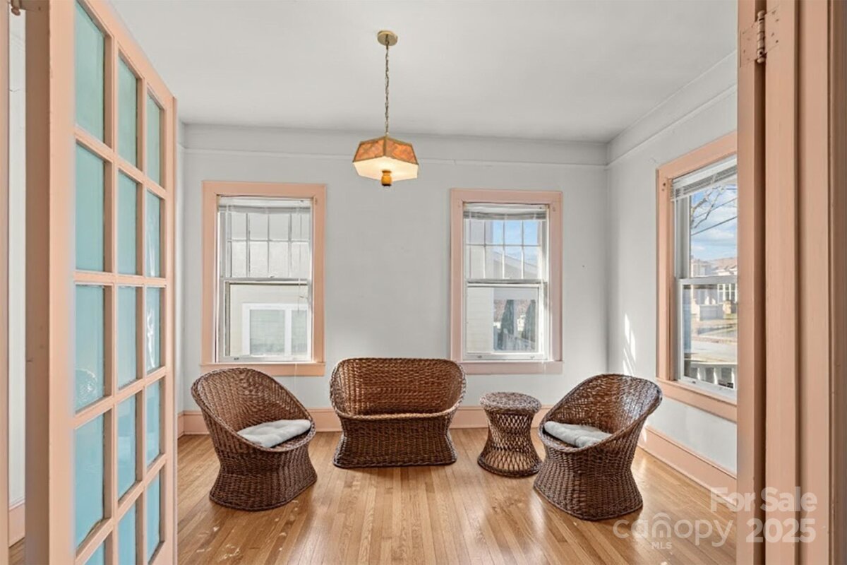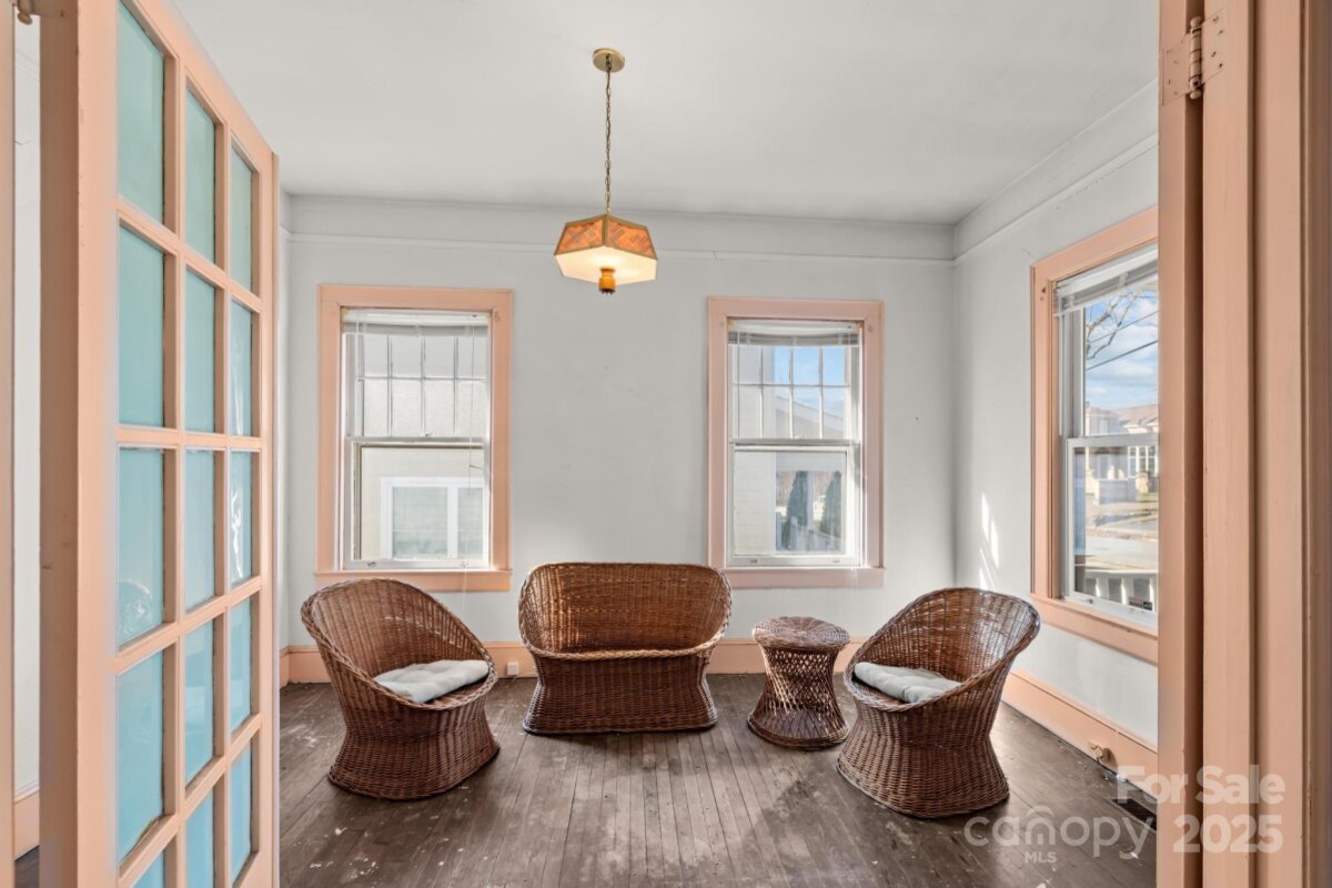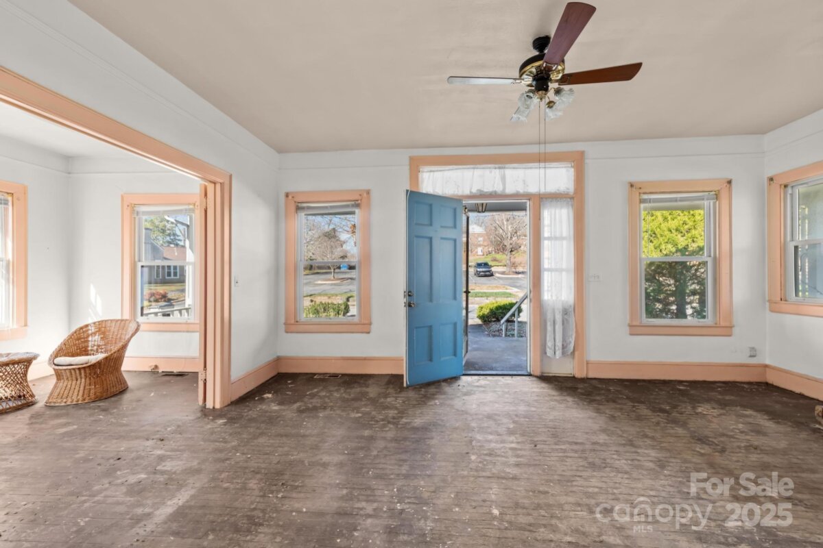 Charming historic home featuring tall ceilings, double French doors, wood floors, a welcoming front porch, and a fireplace. Zoned B-3 for flexible use—business/office, single-family, or multifamily residential. Includes 3 bedrooms, 2 bathrooms, and a full basement. Home requires significant repairs, but plumbing and HVAC are functional. Recent inspection available and ready for the right buyer’s vision. Some photos are enhanced to show how the floors could look after refinishing.