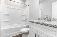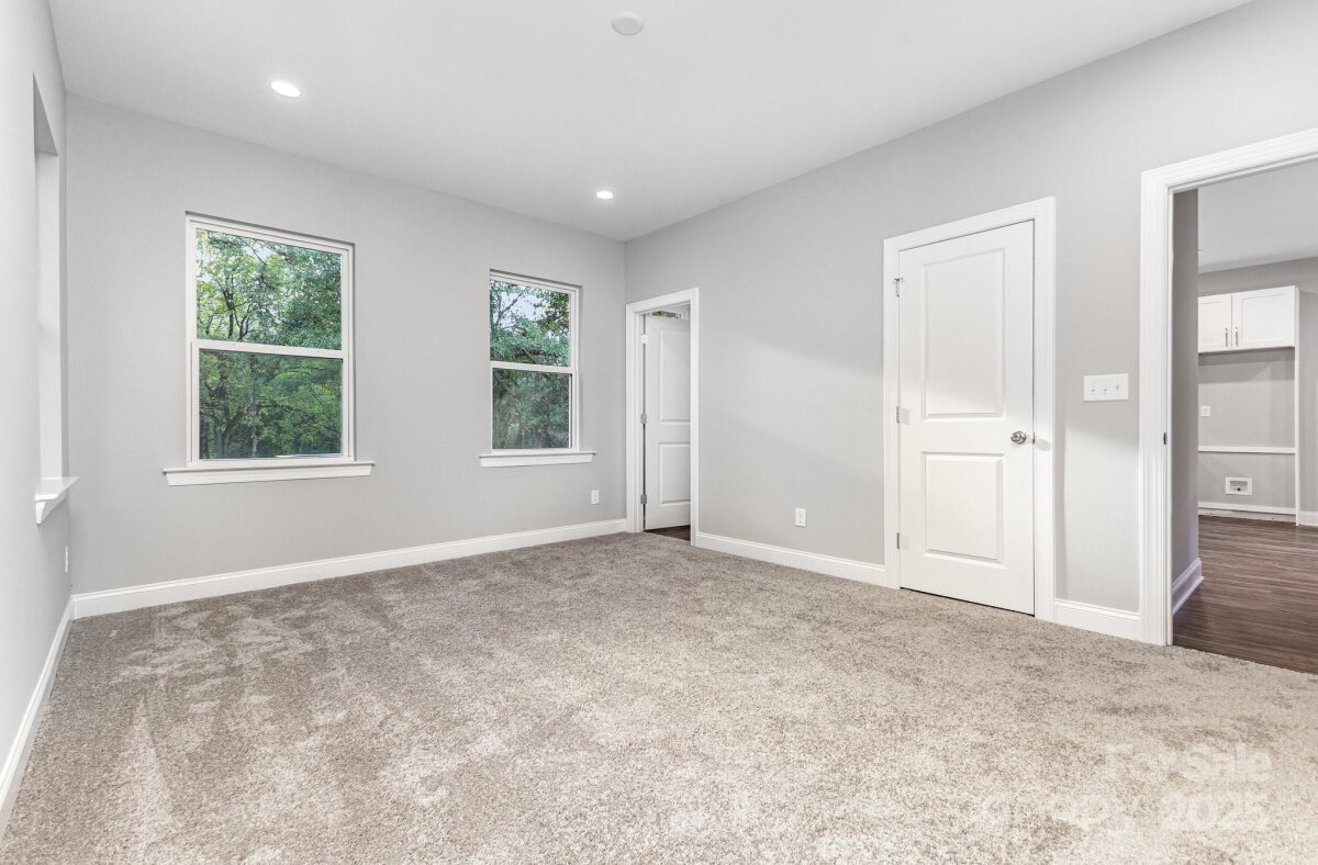 Welcome to this gorgeous new-construction ranch in a prime Gastonia locale. Enter into a bright, open floorplan boasting nine-foot ceilings throughout the living areas. The kitchen is designed for both style and function, featuring granite countertops, stainless steel appliances, shaker-style cabinetry, and a breakfast bar. The main living spaces are laid with luxury vinyl plank flooring for durability and ease, while the bedrooms are carpeted for warmth and comfort. Enjoy a spacious backyard with room for kids, pets, or entertaining. The home sits on a secluded U-shaped road, with no development behind the property, offering added privacy. An additional adjacent parcel is included, bringing the total land area to 0.82 acres This property is just 5 minutes from I-85, offering convenient access for commuters.