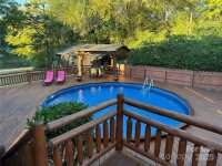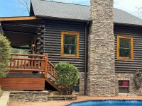 A Private Lakefront Lodge Just Minutes From Charlotte — A Rare Belmont Retreat Escape to your own luxury lakeside retreat in this stunning log-and-stone custom home perfectly tucked along a private lake in the heart of Belmont. With soaring lodge-style architecture, rich wood interiors, spectacular outdoor living, and a sparkling pool overlooking the water, this home feels like a mountain getaway—yet sits less than 25 minutes from Uptown Charlotte. No detail has been overlooked. The exterior showcases deep ebony-stained log walls accented by hand-crafted stonework, warm cedar trim, copper chimney detailing, and wide wrap-around porches that invite you to slow down and breathe in the peaceful scenery. Step inside to a dramatic great room with cathedral ceilings, an antler chandelier, rustic beam work, stone fireplace, and panoramic views of the pool and lake beyond. A striking stone archway connects the main living area to the kitchen, where granite counters, custom cabinetry, and warm textures create the perfect blend of rustic charm and modern comfort. The open floorplan flows effortlessly for entertaining, gathering, and enjoying the breathtaking views from every angle. The main-level primary suite offers the ultimate lodge-style escape with rich wood walls, warm lighting, and a walk-in closet crowned with its own sparkling chandelier. A second beautifully finished bedroom provides flexibility for guests, family, or a private retreat. Two well-appointed full baths complete the layout. A custom spiral staircase adds architectural character while maximizing floor space. The lower area is also accessible from the exterior door, ideal for guests or for moving furniture. Outside is where this property truly becomes a destination. A custom wood deck wraps around the shimmering pool and continues to the lakefront railings, framing unobstructed views of the water and surrounding trees. Enjoy dinners beneath the pergola, sunbathe by the pool, relax on the deck at sunset, or fish or kayak on the peaceful private lake just steps from your door. With every lighted pathway, crafted railing, and inviting outdoor space, the entire property feels like your own exclusive resort. Turn-key and beautifully maintained, this home offers a rare combination of privacy, water access, high-end finishes, and effortless style. Perfect as a full-time residence, second home, luxury rental investment, or weekend retreat. A lakefront log home of this caliber simply does not come available in Belmont. Come experience the magic of this one-of-a-kind property — and make your move to the lifestyle you’ve been dreaming of! Agent owned.