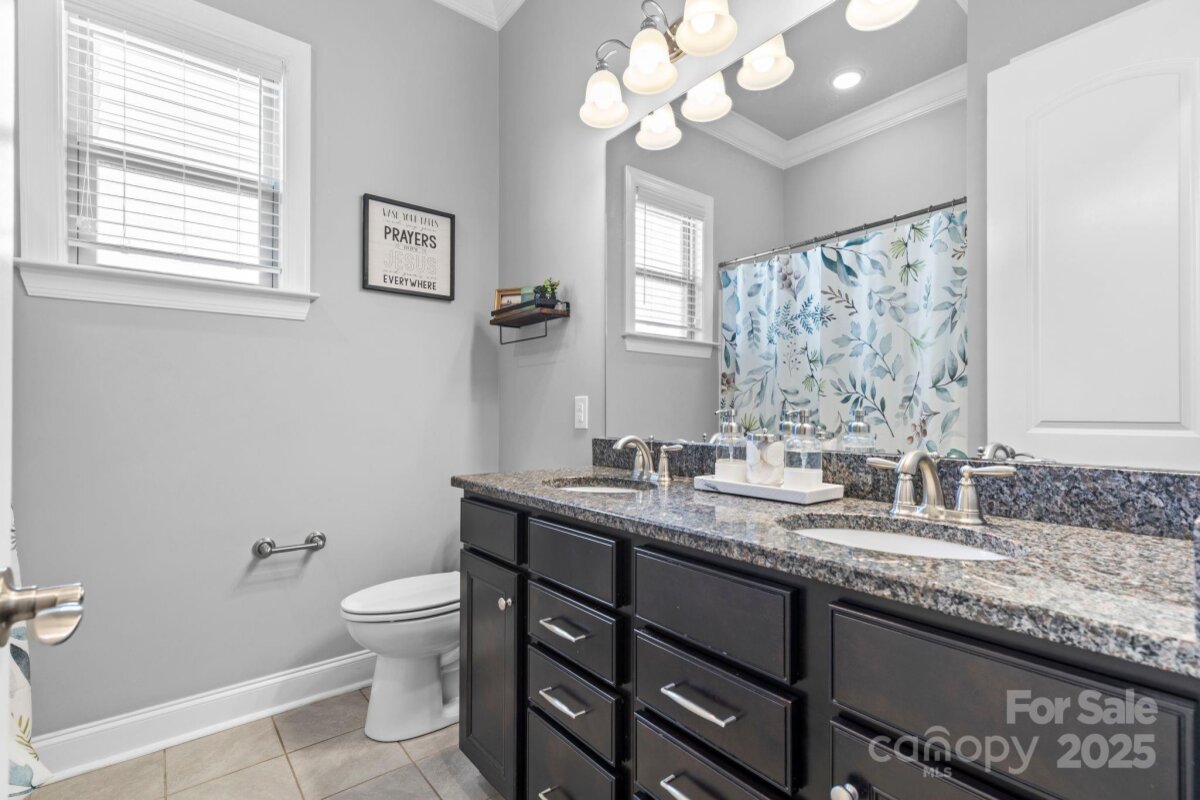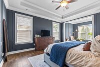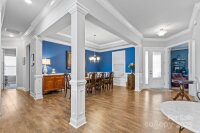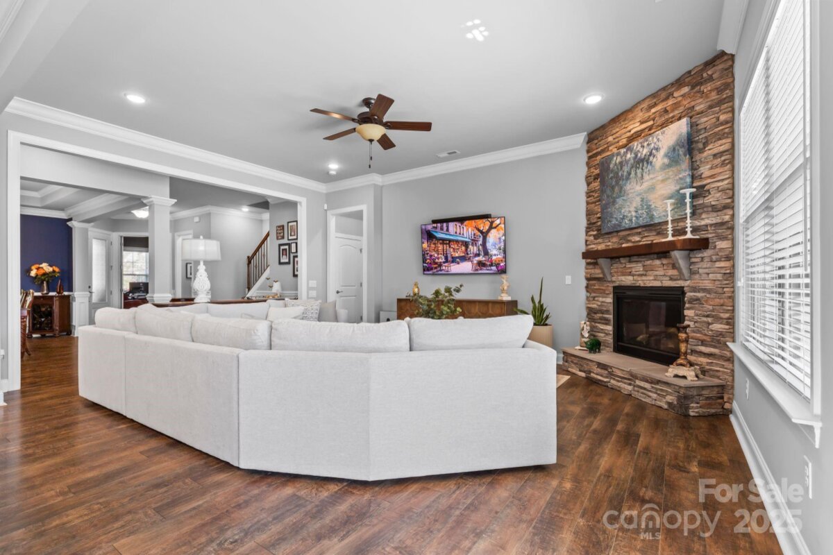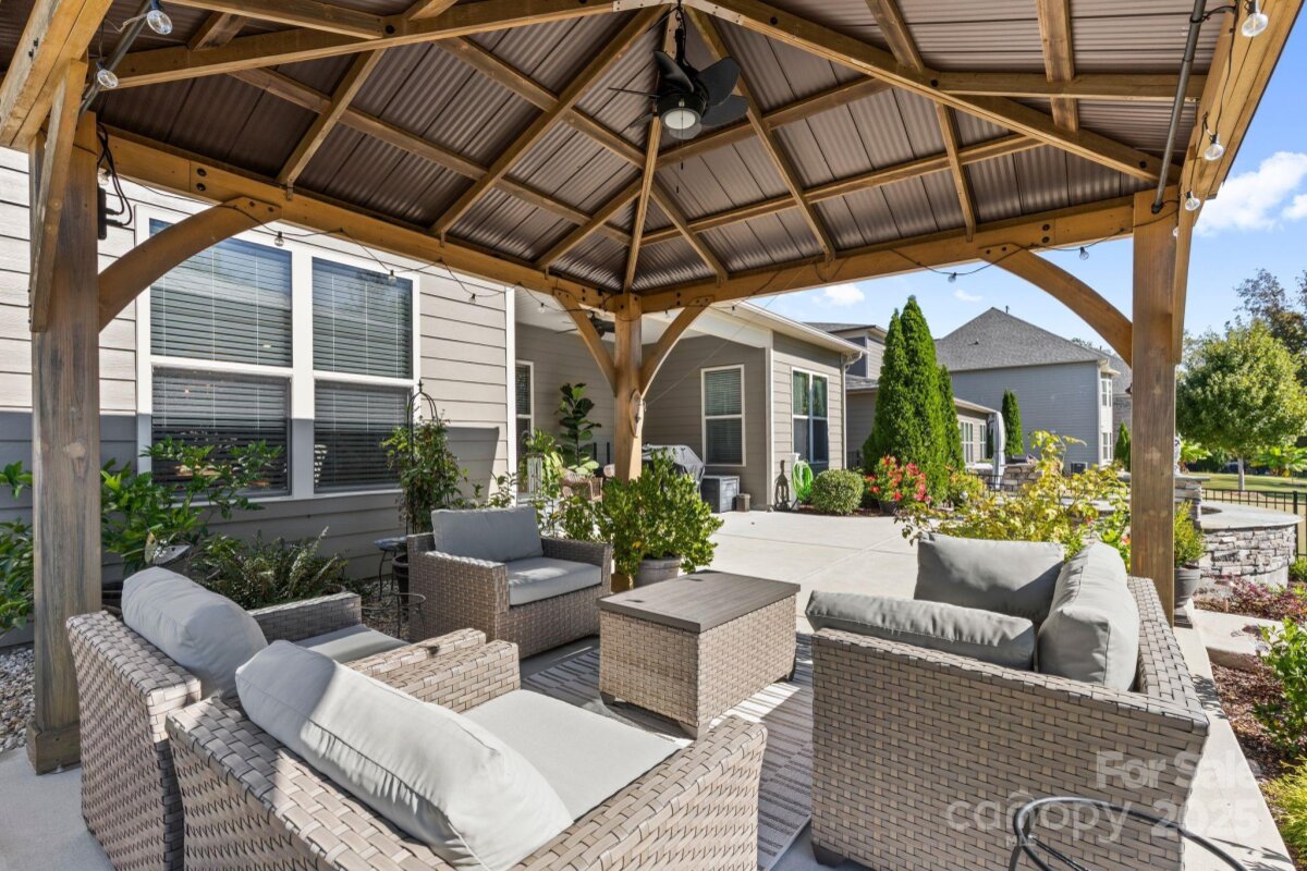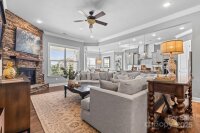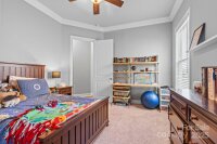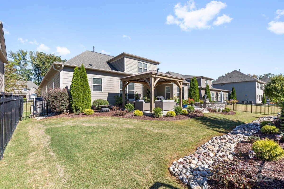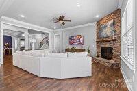 Welcome to Queensbridge, an enclave of exceptional homes convenient to Ballantyne, Fort Mill, Weddington/Waxhaw and the soon-to-open Costco. This is a beautifully improved and maintained, move-in ready predominantly single level floor plan with an open design and lovely outdoor amenities. Large covered front porch welcomes you home, rooms are large and the split bedrooms creates great flow for family living. All rooms have ceiling fans to ensure year-round comfort. A large office off the foyer is ideal for those desiring to work from home while an office nook adjacent to the breakfast nook can provide multiple uses for household efficiency. The kitchen features a gas cooktop, vented hood, fabulous walk-in pantry, and a kitchen island with bar seating. A corner fireplace in the living room adds warmth. The main level primary bedroom features a sitting area while the bath contains an oversized tub, a separate large shower, a private toilet, a linen closet and a large walk-in closet with custom cabinets to maximize storage and efficiency. The drop zone and utility room have custom cabinets to maximize their appeal and use. Upstairs is an en-suite bedroom with adjoining loft ideal for guests. Backyard/outdoor amenities include a roof-lined covered patio, a 12' X 12' wood lattice covered patio, and a large patio slab with beautiful fire-pit perfect for those early spring/fall evenings and extended gatherings. Paved walkways make it easy to access front/rear yards. This is an extraordinary opportunity.