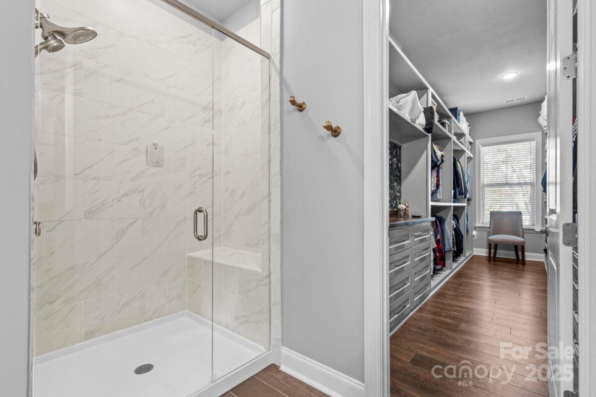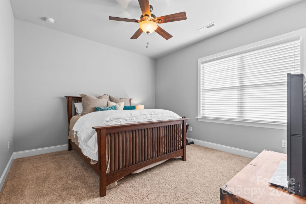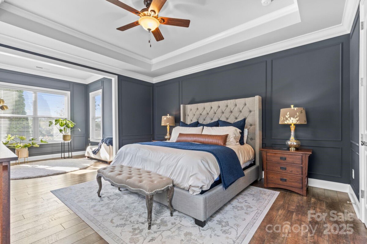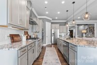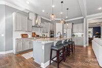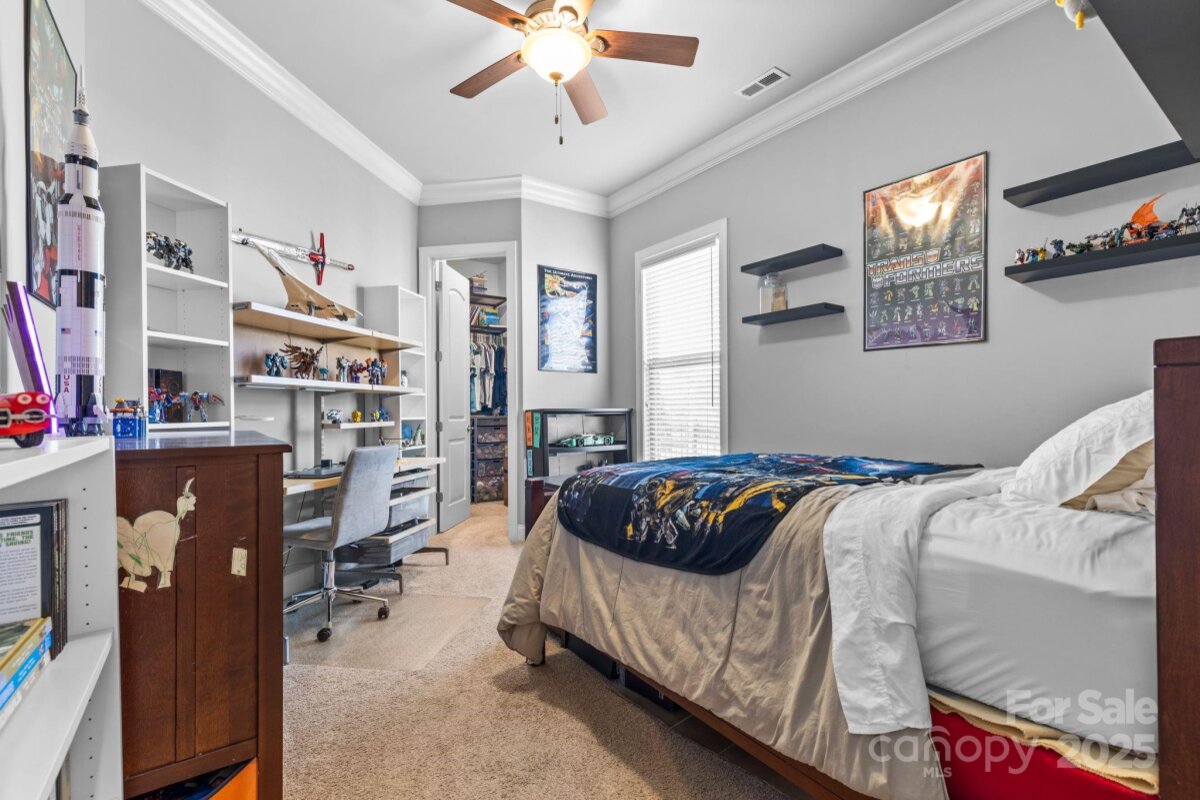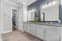 Welcome to Queensbridge, an enclave of exceptional homes convenient to Ballantyne, Fort Mill, Weddington/Waxhaw and the soon-to-open Costco. This is a beautifully improved and maintained, move-in ready predominantly single level floor plan with an open design and lovely outdoor amenities. Large covered front porch welcomes you home, rooms are large and the split bedrooms creates great flow for family living. All rooms have ceiling fans to ensure year-round comfort. A large office off the foyer is ideal for those desiring to work from home while an office nook adjacent to the breakfast nook can provide multiple uses for household efficiency. The kitchen features a gas cooktop, vented hood, fabulous walk-in pantry, and a kitchen island with bar seating. A corner fireplace in the living room adds warmth. The main level primary bedroom features a sitting area while the bath contains an oversized tub, a separate large shower, a private toilet, a linen closet and a large walk-in closet with custom cabinets to maximize storage and efficiency. The drop zone and utility room have custom cabinets to maximize their appeal and use. Upstairs is an en-suite bedroom with adjoining loft ideal for guests. Backyard/outdoor amenities include a roof-lined covered patio, a 12' X 12' wood lattice covered patio, and a large patio slab with beautiful fire-pit perfect for those early spring/fall evenings and extended gatherings. Paved walkways make it easy to access front/rear yards. This is an extraordinary opportunity.