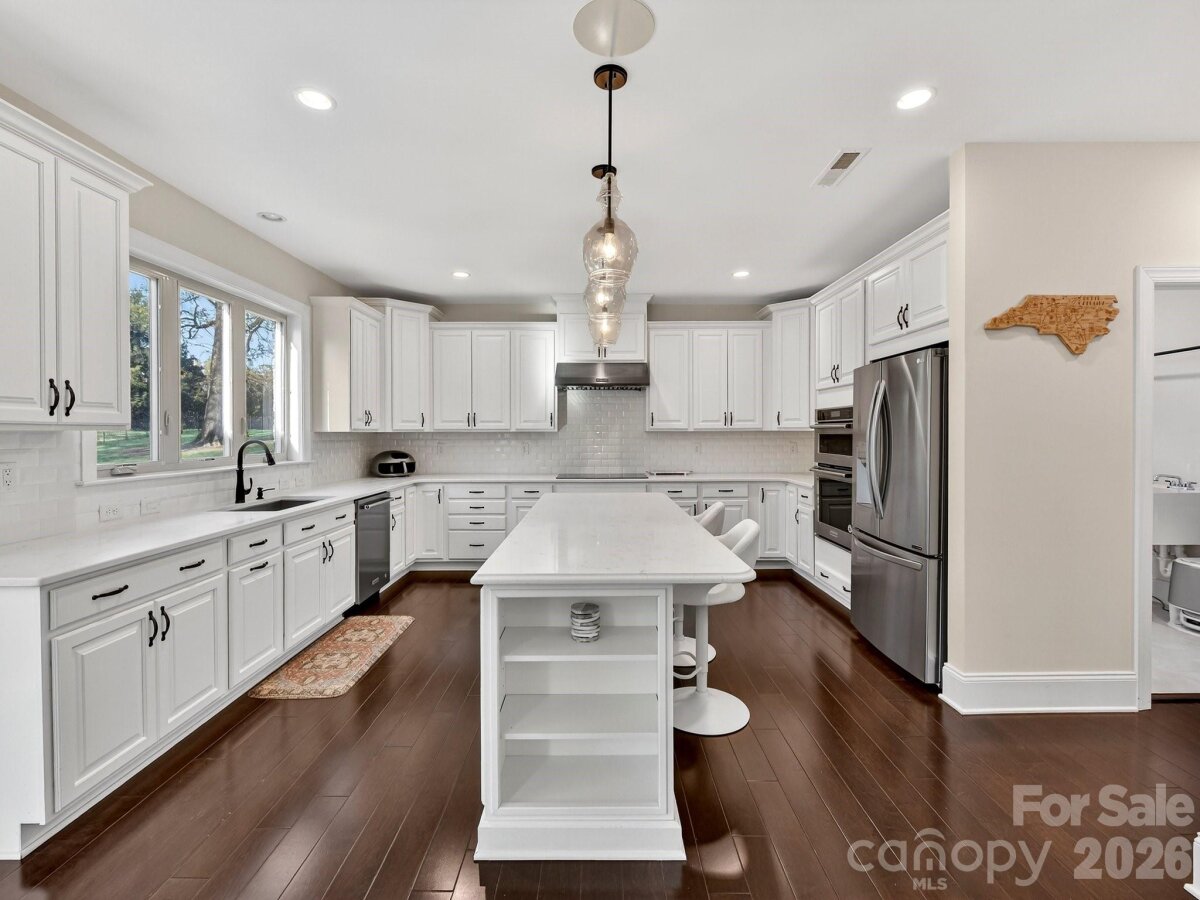Welcome to this beautifully maintained, like-new home built in 2019, ideally located in the heart of Marvin and zoned for some of the area’s most sought-after schools. Designed for modern family living and effortless entertaining, this spacious residence offers 5 bedrooms, 4 full baths, and an unfinished walk-out basement with endless potential. A wide covered front porch welcomes you inside to a thoughtfully designed floor plan filled with natural light and high-quality finishes throughout. The main-level guest bedroom and full bath provide ideal flexibility for visitors or multigenerational living. The heart of the home is the gourmet kitchen, featuring a large island with quartz countertops, abundant cabinetry, and expansive counter space—perfect for gatherings, everyday meals, and entertaining alike. The kitchen, adjacent family room, deck, and primary bathroom are each upgraded with built-in ceiling speakers, creating an elevated audio experience for everyday living and hosting. The open living areas flow seamlessly to the deck, overlooking a private wooded backyard that offers unlimited scope for outdoor living, recreation, or future customization. Upstairs, the primary bedroom is a true retreat, complete with a unique private office setup, built-in speakers in the spa-like primary bathroom, and three oversized walk-in closets. Additional bedrooms are generously sized and thoughtfully laid out for comfort and privacy. A large bonus / theater room comes equipped with a projector screen, making it the perfect space for movie nights, game days, or a media lounge. The unfinished, almost 2000 sq ft. walk-out basement provides an outstanding opportunity to create additional living space, a home gym, recreation area, or storage tailored to your needs. Completing the home is a 3-car garage that has been professionally updated with epoxy flooring, built-in cabinetry, and a functional drop zone, offering both style and organization. Immaculately cared for and beautifully updated, this home truly feels as good as new. With its ideal location, exceptional layout, modern features, and access to Marvin’s top-rated schools, this property is perfectly suited for today’s family lifestyle.