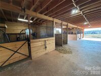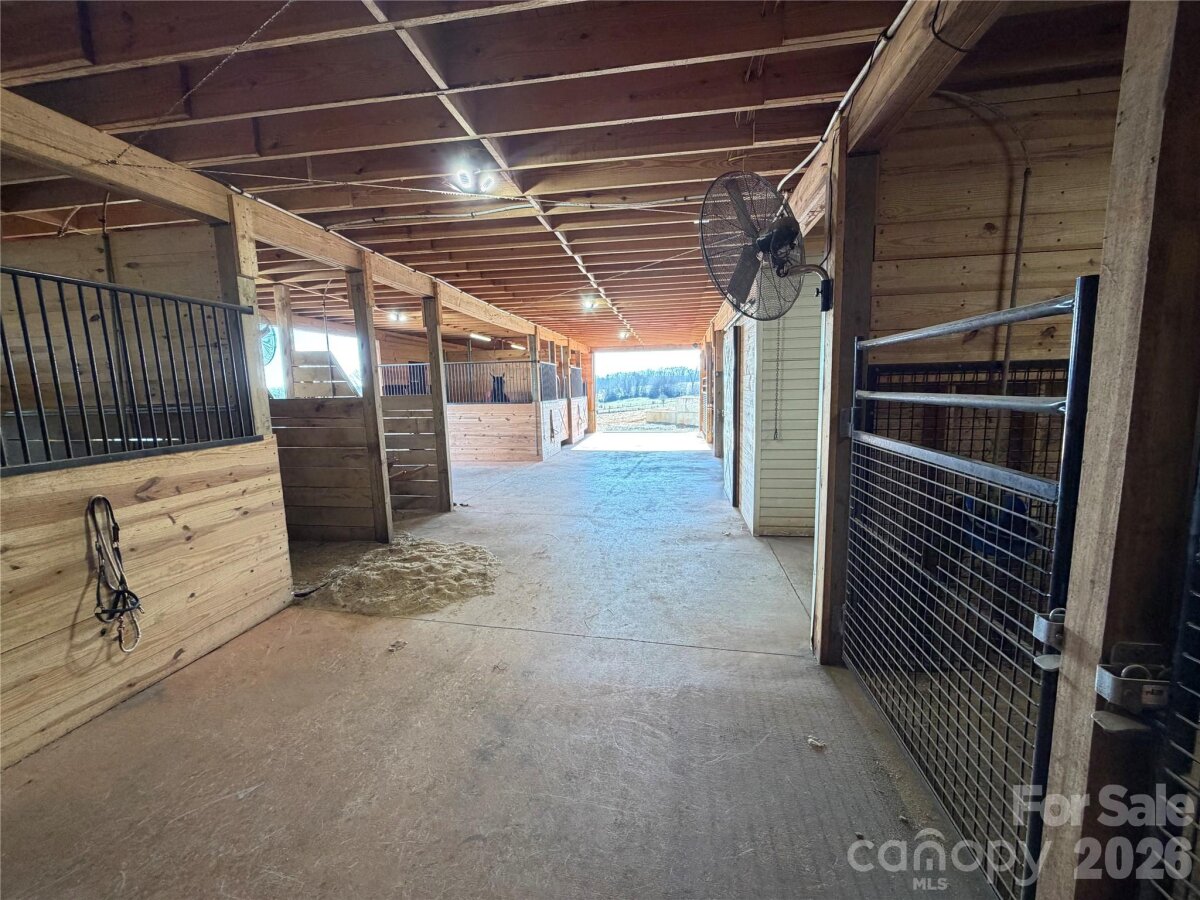 Exceptional equestrian and farm property ideally located just 2 miles off Hwy 421, 3.5 miles from I-77, and only 12 minutes to Yadkinville. Enjoy the convenience of being 40 minutes to Winston-Salem while surrounded by peaceful countryside and just minutes from several local vineyards. The property features approximately 300 feet of creek frontage along North Little Hunting Creek and offers access via Templeton Drive to Gregory Drive. The land includes 28–30 acres of fully fenced pasture, ideal for horses or livestock, along with multiple well-built agricultural and shop structures. The main agricultural barn offers 6 stalls with room to expand to 7, a wash area, tack room, and a 38x55 horse stall area with a 55x12 overhang. A built-in BulkTech feeder adds efficiency for livestock operations. All agricultural structures have passed Yadkin Electrical inspection. Improvements include an impressive 32x48 three-bay insulated shop with 9x48 overhang, spray-foam insulation, attic shelving, and plumbing in place for a future bathroom (no septic installed for the shop). Additional structures include a 48x36 garage/shop, 38x64 workshop, 48x45 downstairs shop with concrete floors, LED lighting, and roll-up garage door, and a pole barn. The residence is a 26x56 mobile home built in 2018, offering 4 bedrooms and 2 bathrooms. The refrigerator and stove convey, providing a move-in-ready option for full-time living or farm management. This versatile property is well-suited for equestrian use, farming, workshop-based businesses, or those seeking a private rural retreat with excellent access to major highways and nearby amenities.