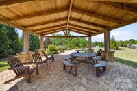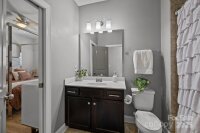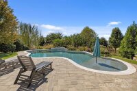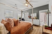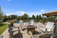 Southern charm meets modern comfort in this freshly painted Bonterra home with inviting double porches. The spacious 5BR/3BA layout features soaring 10-foot main-level ceilings and an open-concept family room with a stone-surround fireplace, plus a convenient main-level guest bedroom and full bath. The remodeled kitchen shines with Carrara-style quartz, white cabinetry with updated hardware, a ZLINE Autograph Edition gas range, and designer lighting. New LVP flooring spans the main level. Upstairs offers a serene primary suite, a flexible bedroom/bonus, and two secondary bedrooms—three walk-in closets provide exceptional storage. Step outside to your private backyard oasis: custom gunite pool with tanning ledge and water feature, Techo-Bloc paver deck, covered gazebo/lounge, and black-iron perimeter fence. Additional perks include a whole-house water filtration/softening system. Enjoy resort-style, award-winning MillBridge amenities: pools with splash parks, lazy river & slides, walking trails, pickleball/tennis/basketball courts, playgrounds, clubhouse, and fitness center.