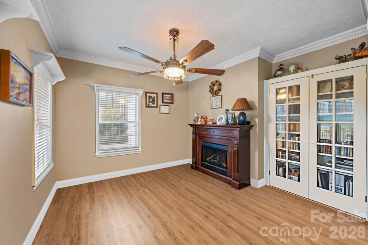 PRICE REDUCED! Welcome to this beautifully maintained home filled with warmth, character, and thoughtful upgrades throughout. A versatile flex space offers the potential for a 4th bedroom, home office, or hobby room to suit your needs. Step inside to discover an inviting foyer and a quaint sitting room complete with custom built-in shelving to your left and a formal dining room with walk-in storage pantry/closet to your right. Perfect for entertaining any size gatherings! The kitchen features a large center island and custom built-in pantry. Plenty of cabinet storage and closet space! Large primary suite offers a relaxing retreat with French door access to the back deck. A spacious walk-in closet and a walk-in tub featuring heat and therapeutic jets, perfect for unwinding at the end of the day. Upstairs, you’ll find a gorgeous, spacious open bonus area on the second floor—ideal as a media room, playroom, or additional living space. Looking for character? You will find recessed lighting and elegant crown molding throughout. Did you see all the French doors and pocket doors? Outdoors, enjoy your wrap around front porch or private backyard oasis complete with a large Trex deck and charming gazebo—ideal for gatherings, morning coffee, or peaceful evenings under the stars. Nestled on almost a full acre, this property offers the perfect blend of privacy and functionality all in a serene setting with room to grow! Schedule your showing today!