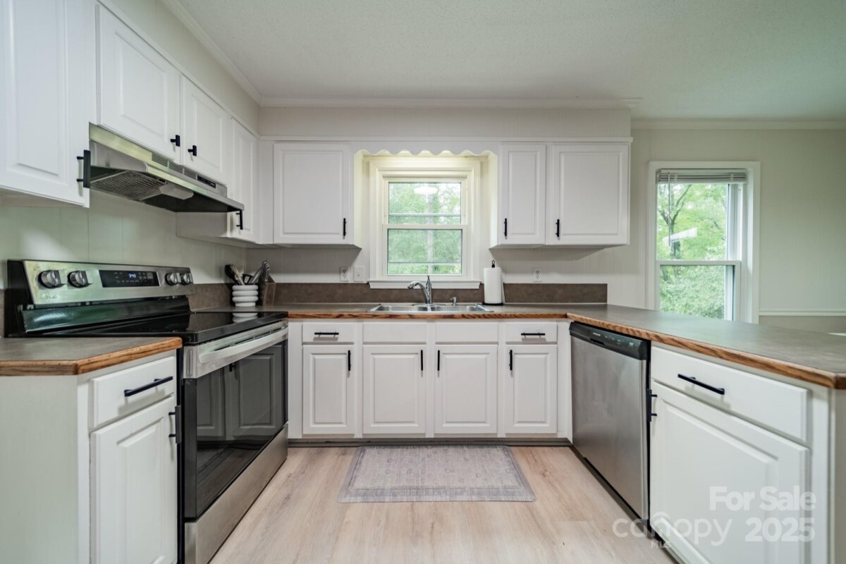 Welcome to this beautifully updated 3 bedroom, 2 bathroom ranch nestled on just over an acre of peaceful and private grounds. Step inside to a bright and open living room that flows effortlessly into a well appointed kitchen featuring stainless steel appliances, abundant cabinetry, and a charming breakfast nook. Fresh interior paint and new luxury vinyl plank flooring provide a crisp, modern feel throughout. The spacious primary suite offers a relaxing retreat with its own ensuite bath, while two additional bedrooms are connected by a thoughtfully renovated Jack and Jill bathroom. A second family room adds versatility, complete with a cozy wood burning fireplace and built in desk with bookshelves, perfect for work or leisure. New sliding glass doors open to an expansive back deck overlooking a lush, sprawling backyard a true private oasis for outdoor living and entertaining. Additional highlights include a generous workshop and a wood storage lean to. All kitchen appliances convey with the home. Perfectly located just minutes from I77, Dave Lyle Boulevard, and a variety of shopping and dining options including Sams Club, Walmart, and Lowes, this residence offers both comfort and convenience. Schedule your private tour today and discover the lifestyle this property has to offer.