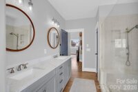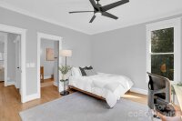 Experience the perfect blend of timeless craftsmanship & modern sophistication in this custom-built Grandfather Homes residence nestled in between the highly sought after neighborhoods of Ashbrook & Sedgefield in an intimate 15-home community just minutes from multiple parks, the 19-mile Little Sugar Creek Greenway/Bike Trail, plus all the restaurants & entertainment in SouthEnd. Designed for both everyday living & effortless entertaining, the main level features an open floor plan with 10-foot ceilings, rich hardwood floors throughout, solid-core 8-foot doors, coffered and trey ceilings, and custom lighting including recessed lights, pendants, sconces, and ceiling fans. A contemporary linear stone fireplace anchors the living room, flanked by custom built-ins by Kauffman Furniture. Interior and exterior ceiling speakers elevate both quiet evenings and lively gatherings. The expansive kitchen is a true showpiece, offering stunning quartz countertops, elongated tile backsplash, custom cabinetry, stainless steel appliances including a wine cooler, gas cooktop with electric oven, striking range hood, & a generous pantry. Whether hosting dinner parties or enjoying a quiet meal at home, this kitchen delivers style and function in equal measure. With three spacious bedrooms, each featuring its own private bath and large closet, comfort and privacy abound. A secondary main-level suite includes a luxurious bath with quarts counters, tub, and custom tiled shower. Upstairs, the primary suite offers trey ceilings, a large walk-in closet with custom built-ins, dual vanities with quartz counters, private water closet, and a massive walk-in shower with digital controls for a true spa-like experience. Two large walk-in attic areas provide exceptional storage. Outdoor living is just as impressive. The fully fenced backyard creates a private retreat complete with lush landscaping, a generous paver patio, built-in gas grill, and even a tucked-away reading nook/deck for peaceful moments. The welcoming front porch invites morning coffee and afternoon drinks with neighbors, embodying the charm of this close-knit community. The neighborhood hosts fun get togethers/events including cookouts in the cut-de-sac! A detached garage offers incredible main-level storage plus its own 500+sf unfinished attic which could be converted to a 4th bedroom/2nd living quarters, bonus room, or home office. Recently updated with modern flair while preserving its craftsman character, this home seamlessly combines thoughtful design, premium finishes, and an unbeatable location. Less than 1 mile to Freedom Park & Park Road Shopping Center. This is more than a home—it’s a lifestyle.