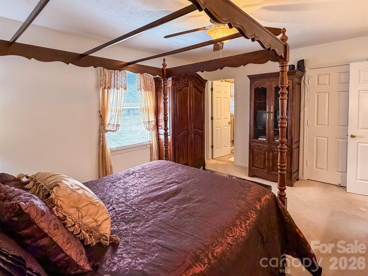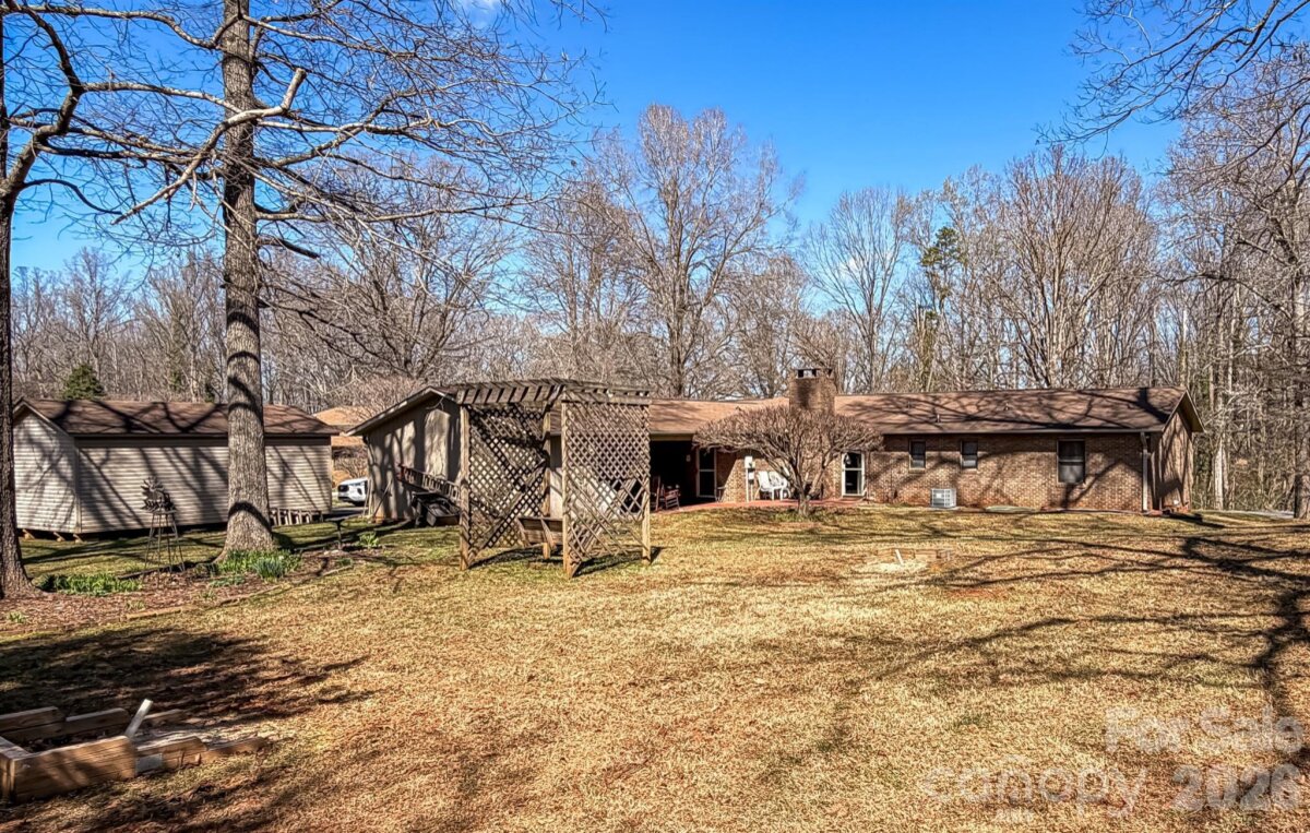 Welcome home to this well-maintained 3 bedroom, 2.5 bath brick ranch with wood accents offering 2,076 square feet of comfortable single-level living on a spacious lot with plenty of outdoor space to enjoy. The layout includes a den, living room (currently used as a dining room), and a dining room now serving as an office, providing flexible space with room to grow into for a variety of lifestyles. Carpet runs throughout most of the home with tile in the bathrooms and vinyl flooring in the kitchen. The primary suite features a tub and single vanity. Two additional bedrooms share a hall bath with a private toilet area with tub enclosure, an additional shower, and a single vanity. Entry from the carport leads into a large utility and mudroom area with laundry and a convenient half bath—perfect for everyday functionality. The attached two-car carport is enclosed on two sides and offers potential for future garage conversion. Just behind the carport, a small patio provides a peaceful outdoor sitting area overlooking a large backyard with a trellis swing, horseshoe pits, established flower beds, and space for a garden. A large storage building with a roll-up door sits at the end of the driveway for easy access to tools, equipment, or hobbies. Conveniently located near I-40 and Hwy 16 with easy access to shopping, schools, and commuting routes, this home offers comfortable one-level living and is ready for your personal touch.