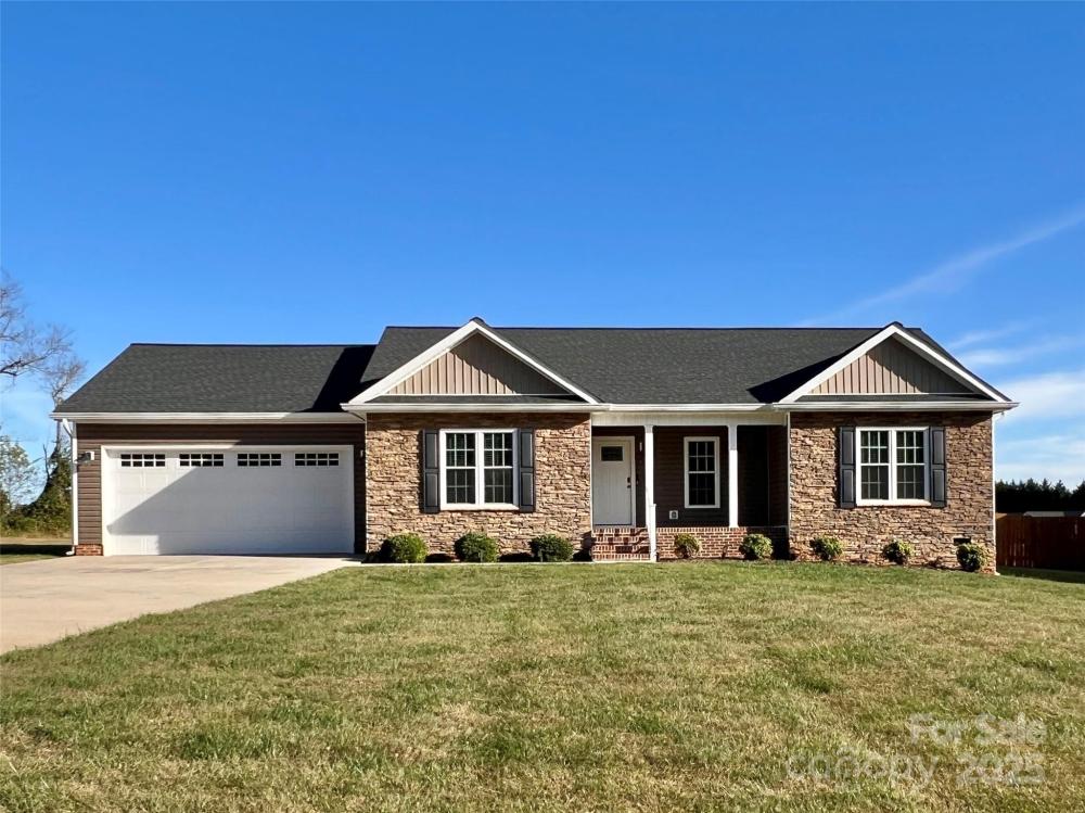 Better than new and far from cookie cutter! This home is perfect for buyers who love the look of new but prefer a quieter setting over a large development. No HOA! Built in 2020, this thoughtfully designed ranch offers quality construction and classic appeal. Situated on a level half-acre lot, there’s plenty of room to garden, play, or design your dream outdoor space. Enjoy peaceful surroundings and room to breathe without sacrificing convenience. Located just minutes from I-77, the hospital, shopping, dining, and the new Jennings Park. An open layout with cathedral ceiling creates a bright, spacious feel throughout the main living area. The inviting eat-in kitchen features granite countertops, a farmhouse sink, stainless steel appliances, white cabinetry, and a pantry. The spacious primary suite includes a walk-in closet and a beautiful bath with double vanity, shower, and tile flooring. Two additional bedrooms share a stylish full bath with granite counters. A dedicated laundry room with cabinetry provides extra storage and a perfect drop zone. Enjoy your morning coffee on the covered front porch or unwind on the back deck. The two-car garage includes a workshop area, and the large driveway offers ample parking.