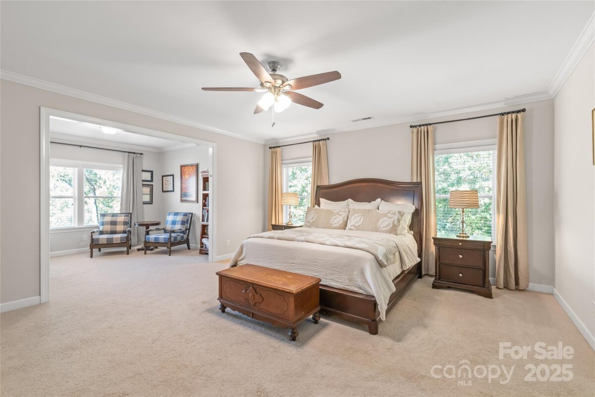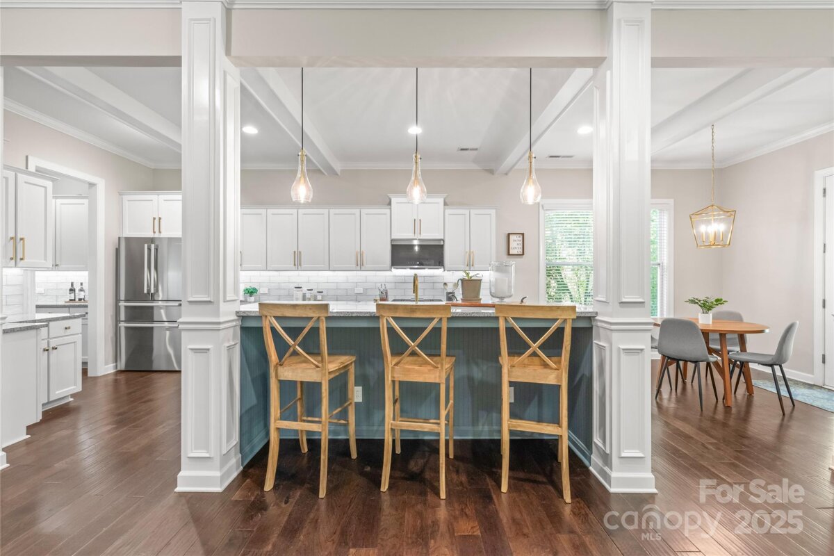 Welcome to the heart of Indian Land, located next to Ballantyne, where convenience meets comfort; just minutes from the new Costco, Target, and Lowe’s, and easy access to I-485. From the moment you step through the grand entry with soaring ceilings and 8’ doors, this beautifully maintained home draws you in with its warmth and character. Gleaming hardwoods flow throughout the main level, enhanced by elegant crown molding and timeless trim details. The chef’s kitchen is the true heart of the home, featuring new appliances, updated knobs, designer lighting, new backsplash and faucet, along with a walk-in pantry and butler’s area. The open flow into the cozy living room with fireplace makes it perfect for family gatherings or entertaining friends. Work from home in the private office, keep life organized with the custom-designed drop zone, and enjoy the updated powder bathroom for added convenience. A new furnace provides year-round comfort and peace of mind. Step outside and unwind on the newly constructed covered porch overlooking the private, fenced-in backyard with wooded views. Whether it’s morning coffee or evening conversations, this outdoor retreat is designed for everyday enjoyment. Upstairs, the luxurious primary suite features a private sitting area and large walk-in closet. Three additional spacious bedrooms, a second living area/bonus room, and a spacious laundry room with built-ins offer space and functionality for everyone. With thoughtful upgrades and spaces designed for real living, this home perfectly blends style, comfort, and connection—all in one of Indian Land’s most desirable locations.