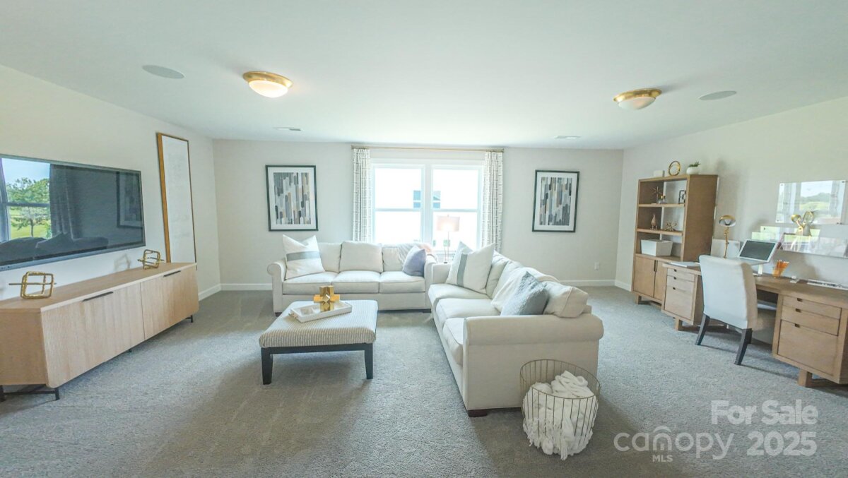 Welcome to 1018 Stone Marker Drive, an extraordinary opportunity to own a brand-new, never-before-lived-in model home, perfectly positioned with stunning views of the first tee at Stonebridge Golf Club. This elegant 3-bedroom, 3-bath residence showcases luxurious, top-of-the-line finishes throughout and has been thoughtfully designed to offer both sophistication and comfort. The open-concept main level features a spacious living area, with a gas fireplace, built-in bar, and dreamy sunroom, creating the perfect setting for both entertaining and everyday living. The chef’s kitchen is a culinary dream, boasting a gas range, oversized farmhouse sink, walk-in pantry, and an expansive eat-in island with generous seating, ideal for gatherings of any size. This home is fit for the host with the most! Retreat to the main-level primary suite, a true sanctuary complete with its own private sitting room overlooking the lush greens of the golf course, a perfect place to begin or end your day. Upstairs, discover a private third bedroom with an en-suite bath and a large, versatile loft space that easily adapts to your lifestyle, whether as a home office, media room, or entertainment space. Step outside to enjoy the serene, shaded patio featuring a built-in gas grill, all while taking in the picturesque views of the fairway. Every detail in this immaculate model home has been meticulously curated for modern living, combining elegance with functionality. Ready for immediate move-in, this residence is nestled within a highly sought-after community offering convenient access to local schools, amenities, and major commuter routes. Please note, pool, exercise, and tennis facilities are not included in the HOA; membership ($39/month) is required for access. Don’t miss your chance to call this exquisite property your new home. USDA loan eligible!