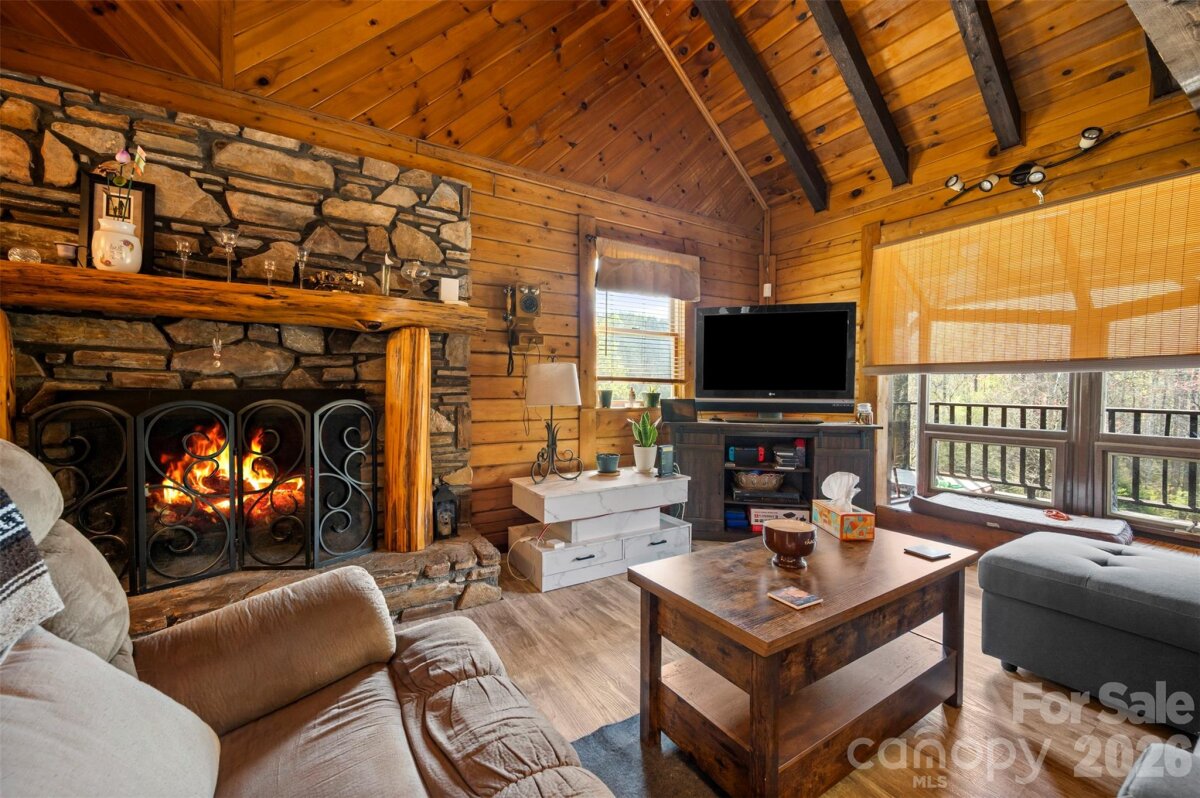 Tucked away on 1.22 peaceful acres between Rutherfordton and Lake Lure, this charming 3-bedroom, 2-bath cabin offers the perfect blend of rustic character and modern comfort. When you step inside, you'll find beautiful hardwood floors, vaulted ceilings, and custom woodworking accents that create a warm, inviting atmosphere. The cozy gas log fireplace makes the living space ideal for relaxing evenings at home and a tankless water heater adds efficiency and convenience. Enjoy the outdoors from both the covered front porch overlooking the fenced yard and the screened-in back porch—perfect for taking in the serene surroundings year-round. Need extra space? The 16x20 outbuilding with power is ideal for hobbies, a workshop, or additional storage, and is complemented by an attached carport and rear lean-to for even more functionality. An exterior entry unfinished basement provides excellent storage options, and the private setting offers a quiet retreat while still being conveniently located between Rutherfordton and Lake Lure. Whether you're looking for a full-time residence or a weekend getaway, this property delivers comfort, charm, and versatility in a beautiful natural setting!