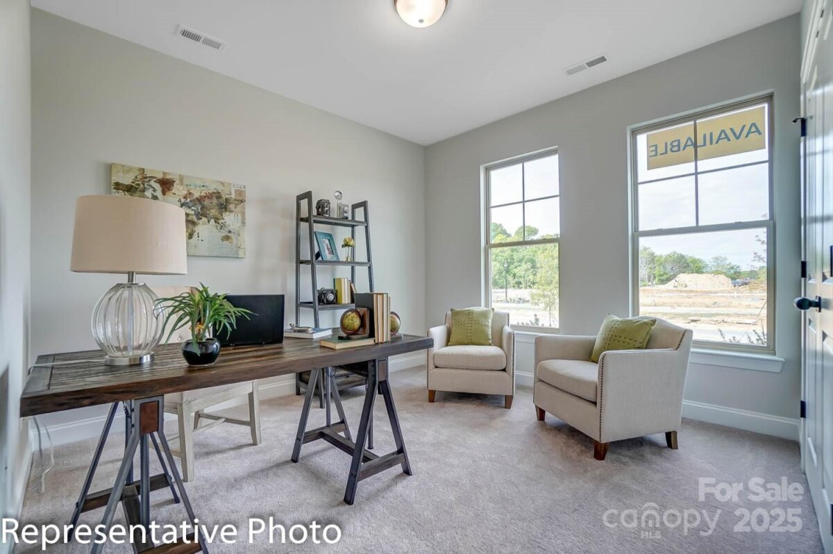 Ranch on a walk out BASEMENT on a homesite backing to trees! Discover the ease of low-maintenance living in this beautifully designed ranch style home, featuring a finished walk out basement that backs to a serene tree line for added privacy and natural beauty. The spacious basement level includes a large great room additional bedroom and bathroom, plus ample unfinished storage space- offering both functionality, flexibility, and potential for expansion. The Mayfair plan features an open kitchen with breakfast area that leads into the family room. The designer kitchen includes white cabinets with contrasting grey island, quartz countertops and stainless-steel appliances including a gas cooktop, designer range hood and wall-oven. One additional bedroom and an office are also featured on the main floor. This home combines the luxury of brand-new construction with thoughtful amenities including lawn care and conveniently located walking trails. Enjoy modern living in a peaceful, well-maintained neighborhood designed for comfort and convenience.