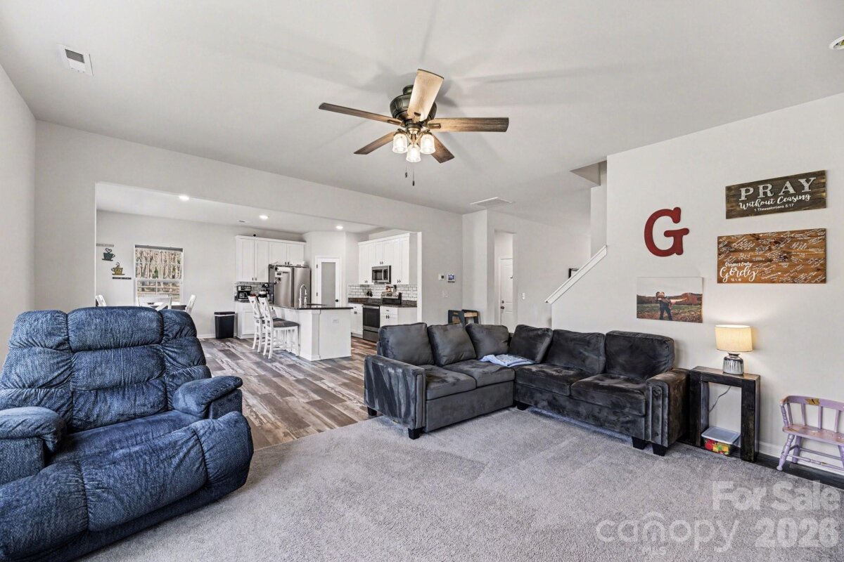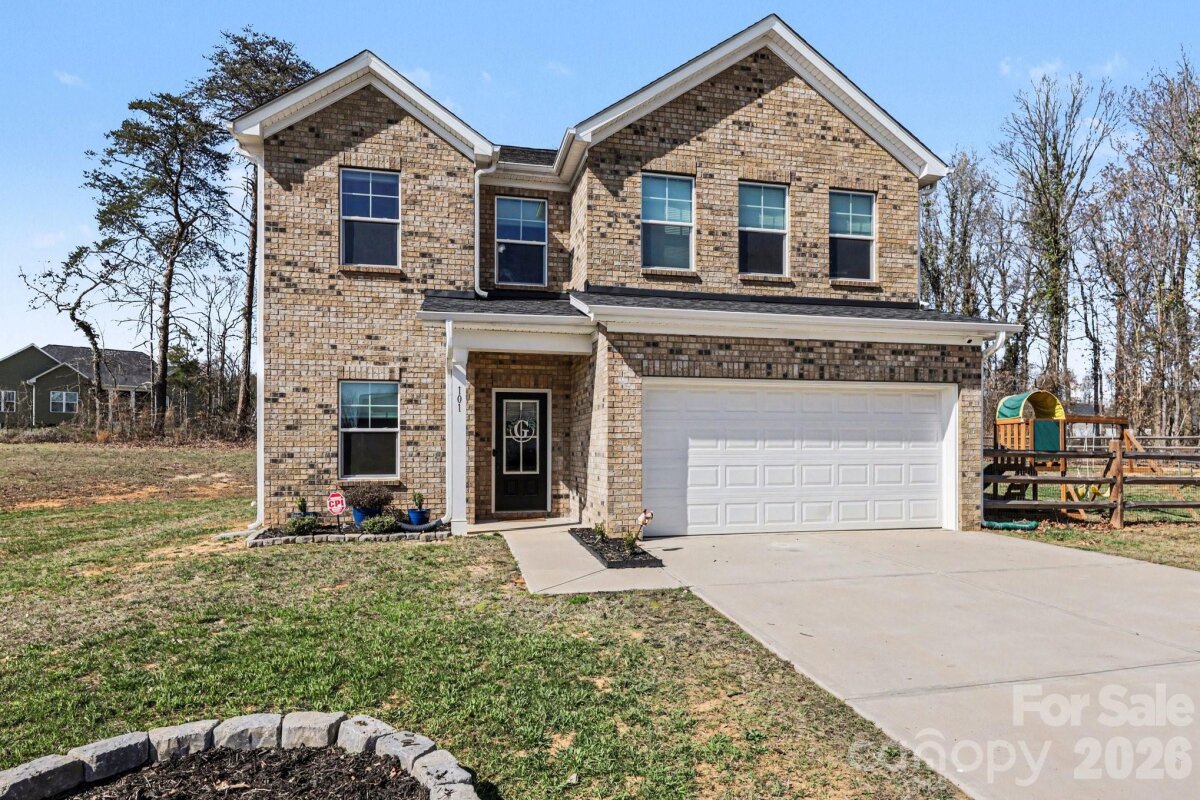 Need space to work from home, spread out, and stay organized? This spacious two-story home offers over 2,600 heated square feet with 5 bedrooms and 2.5 bathrooms, providing ultimate flexibility. Whether you need one or two home offices, this property delivers with versatile flex rooms. Perfect for dining, an office, or a playroom—and an open upstairs loft/den for extra living space. The main floor features stylish gray-tone laminate flooring and an open-concept layout. The bright kitchen includes white cabinets, an island with a breakfast bar, granite countertops, a subway tile backsplash, a pantry, and stainless steel appliances—including the refrigerator, opening to the breakfast area and great room. The mud room offers multiple uses, such as extra pantry space, storage, or an office, and leads to a second concrete patio, ideal for relaxing or entertaining. The primary suite boasts a full bath with granite countertops and a large walk-in closet. The loft area is perfect as a family room or play area. The laundry room comes complete with a washer and dryer. With ample attic storage, numerous closets, a two-car garage, fenced backyard, and a corner lot on a generous .58-acre in an established neighborhood, this home checks every box. Conveniently located with nearby parks. Time to work, play, and enjoy life to the fullest in your new home!