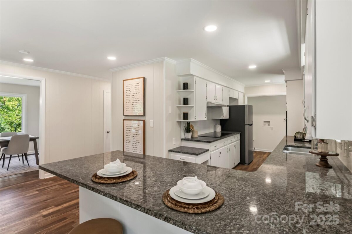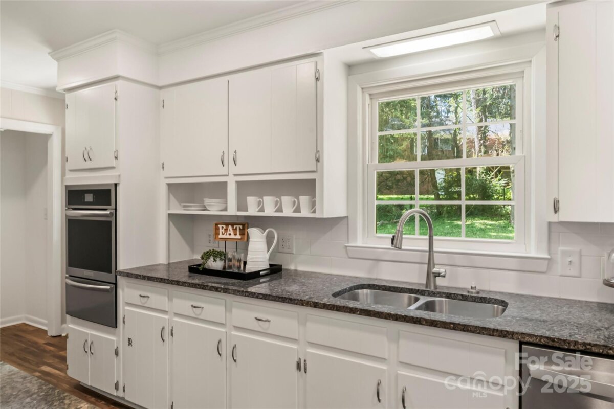 Welcome home to your classic, beautifully updated brick ranch on almost half an acre in Morganton's Camelot neighborhood. This flexible 4-bed, 2.5 bath layout highlights a spacious kitchen, 2 generous living areas, and a formal dining room, with plenty of room for family, guests, and home office. The family room's wide brick fireplace creates a warm, cozy focal point, with sliding doors opening to the back patio and sloping back yard, surrounded by mature trees for privacy and shade. The kitchen has gorgeous stainless appliances and sleek countertops, and opens onto the family room, with a breakfast bar to sit at so the chef of the house doesn't get lonely during dinner prep. You'll love the practical features too - attached 2-car garage, mudroom entry, and powder room. But wait, that's not it - there's 2,048 sq ft of potential in the unfinished basement. Don't miss this perfect blend of classic style and modern upgrades. Come check it out!