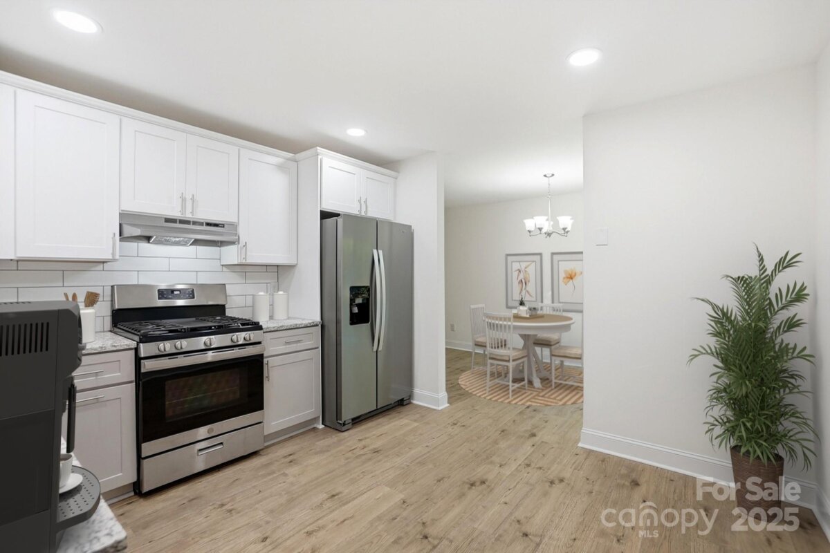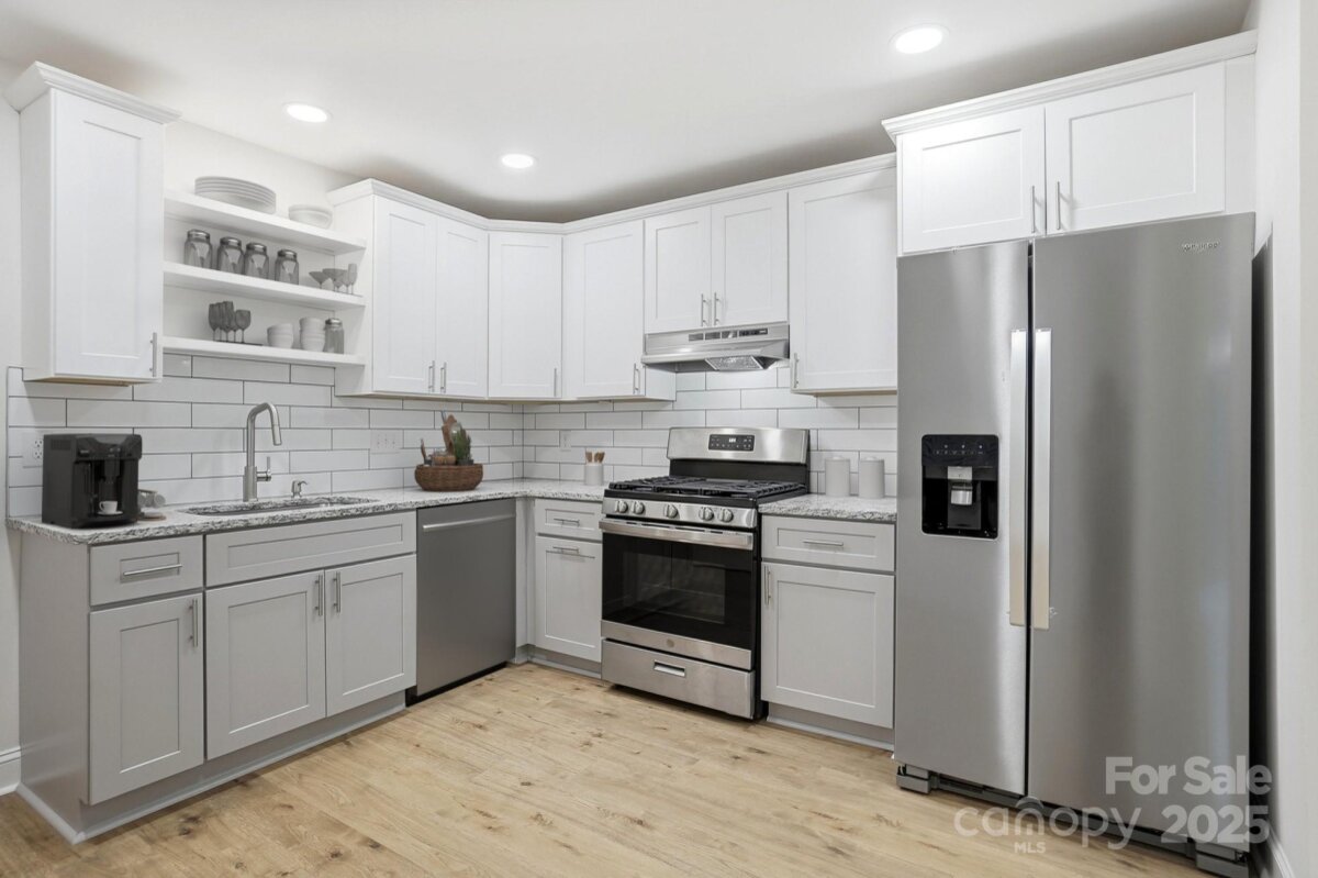 Welcome to 10200 Atchinson Drive- a charming ranch-style home in the heart of Mint Hill that perfectly blends comfort, style, and modern updates. Step inside to discover a beautifully refreshed interior featuring new flooring, a remodeled kitchen and bathrooms, and a cozy fireplace that anchors the living space with warmth and charm. The updated kitchen shines with stainless steel appliances, tile backsplash, and sleek finishes, while the remodeled bathrooms include stylish touches like a fully tiled primary shower with a glass enclosure. This thoughtfully updated home is truly move-in ready, offering peace of mind with a new roof in 2025, furnace in 2020, AC in 2024. Enjoy your morning coffee or evening gatherings in the large, flat backyard, complete with a storage shed for extra space-or unwind on the private back patio. The attached one-car garage and dedicated laundry area add everyday convenience. Located just minutes from Mint Hill’s shops, dining, and parks, this home offers the perfect combination of small-town charm and easy access to Charlotte.