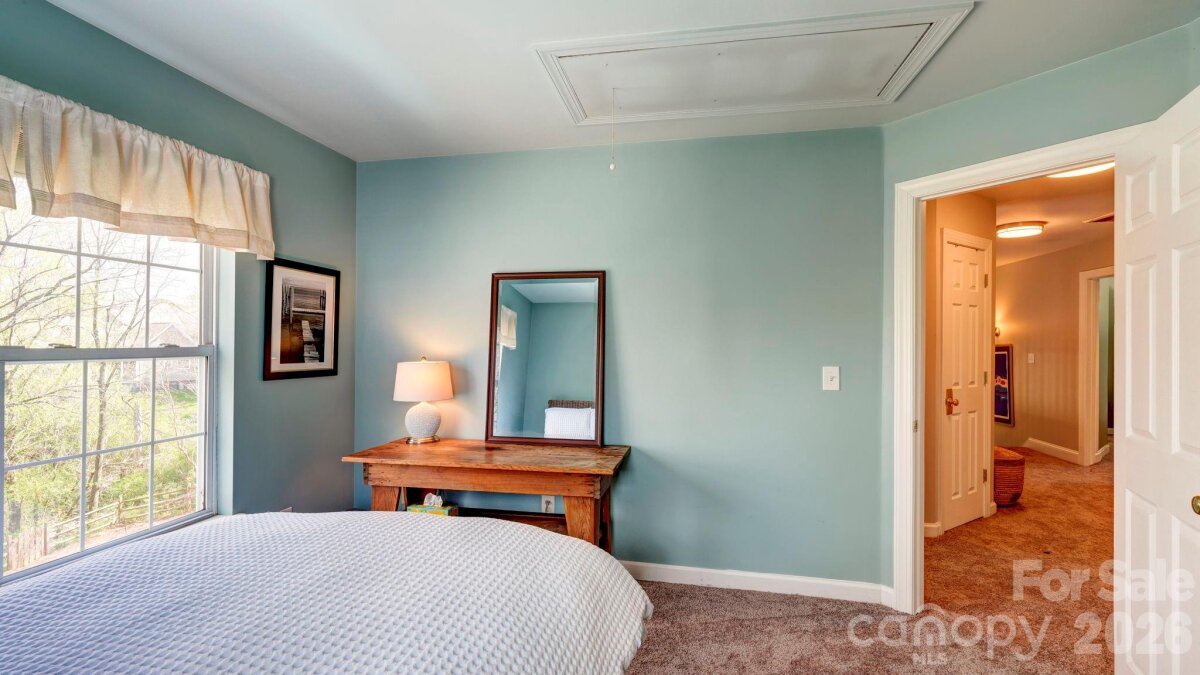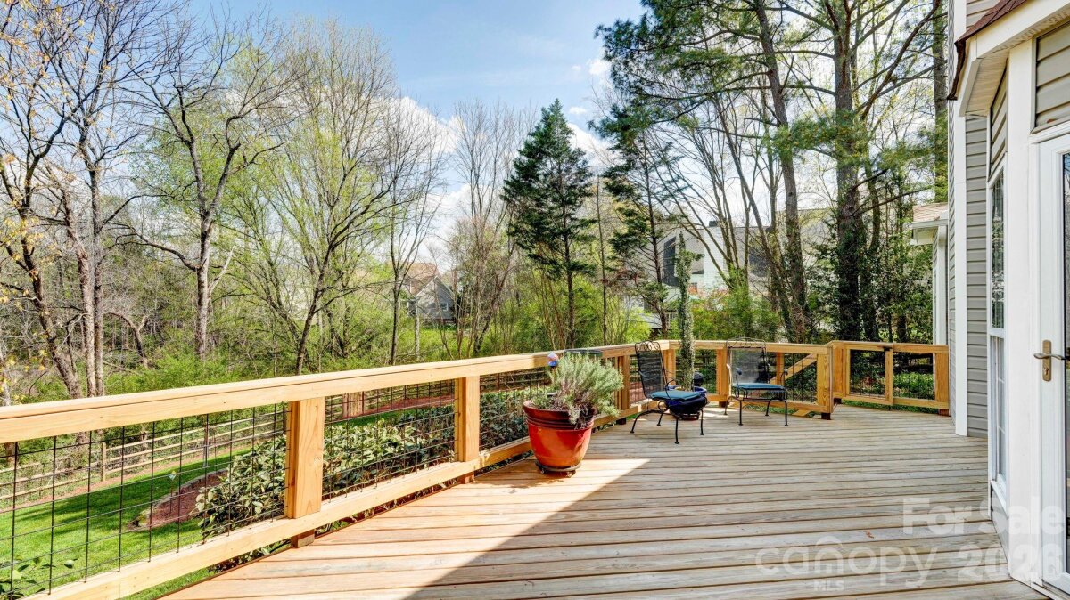 Tucked away on a cul-de-sac in the back of the neighborhood, 10207 Rougemont Lane is offered for sale for the first time in two decades. This lovingly maintained home sits on a more than 1/2 acre lot that feels like you're in the country, backing land owned by Mecklenburg County as part of the Four Mile Creek Greenway. Inside, a two-story foyer leads to the vaulted living room with fireplace, and windows to the back. There's a breakfast area, then the renovated kitchen with white soft-close cabinetry, double ovens, a gas downdraft cooktop and bar area. Formal dining is nearby, also a great home office option. The main floor primary bedroom is spacious, with a sitting area (currently used as an office) and a spa-like bath with heated floors, double vanity, soaking tub (with a view) and shower with multiple heads. There's also a customized closet, a great use of space. Upstairs, you'll find 3 more bedrooms options (one a bonus/bed), and a renovated bathroom. Hardwood floors throughout most of the main level, and new carpet and tile upstairs. Relax on the back deck, overlooking the park-like backyard with nice privacy. Zoned to Endhaven Elementary, South Charlotte Middle and Ballantyne Ridge High School, which has a walking entrance in the neighborhood. Welcome home!