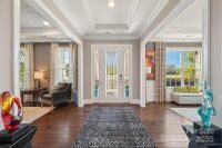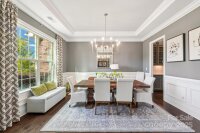 Welcome your Weddington estate home that defines luxury living. This former model home offers an unparalleled combination of elegance, comfort, and state-of-the-art features. Stunning curb appeal, complete with a welcoming front porch and an oversized 3-car side-load garage, set against the backdrop of a wooded and expansive private backyard. Grand foyer with soaring 10-foot ceilings, exquisite millwork, and hardwood floors. Formal dining room and living room. Family room with gas fireplace and coffered ceilings leads to the heart of the home; a gourmet kitchen, a chef's dream featuring a massive island, tons of countertop space and extensive cabinet storage, stainless steel appliances, a farmhouse sink, walk-in pantry, drop zone with cubbies and a private office nook. Direct access to the covered patio and firepit- relaxing outdoor living! Guest br and full ba on main. Second floor features a luxurious primary suite; a true sanctuary, offering a spa-like en-suite bath, dual closets and direct access to laundry room. Plus++ a sitting area and balcony for your own private escape! All bedrooms are spacious and have their own bath. The massive bonus room, with its designer shiplap and surround sound, is perfect for a media room, recreation area, or workspace. Third floor recreation area is that perfect flex space- one more area that perfectly completes the ease and flow of this home. Garage with finished floor and tons of storage opportunity, full yard irrigation. As a former model home, this property is filled with high-end upgrades and thoughtful details that set it apart. From designer lighting to custom built-ins, every aspect of this home has been meticulously curated to offer the pinnacle of modern luxury. Enjoy the perfect balance of serene, private living while being just minutes from highly rated public schools, vibrant shopping and dining of Waverly, Rea Farms, and Blakeney. This is more than a home; it’s a lifestyle.