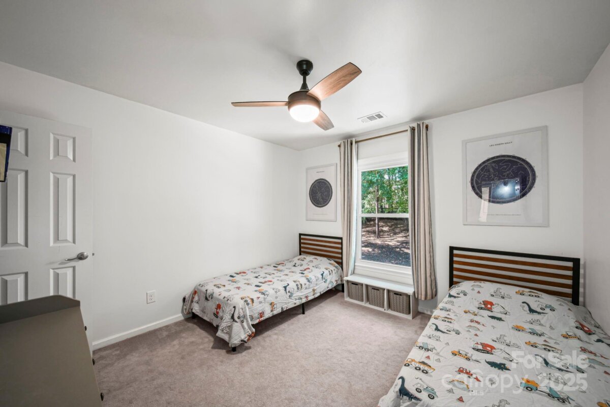 Welcome to 10218 Rougemont Lane, a lovingly maintained 4BR/2BA home in the heart of Ballantyne. Nestled on a quiet cul-de-sac and backing to woods, this home offers rare privacy with the convenience of being minutes from shopping, dining, schools, fitness, and freeway access. The open floor plan with soaring ceilings creates an inviting space for entertaining. A main-floor primary suite provides comfort and accessibility, while upstairs offers additional bedrooms and flexible living space. Updates include granite kitchen countertops, an upgraded patio with retaining wall, and a 2018 roof with transferable 30-year warranty. All appliances were replaced in 2023 and remain with the home, including the refrigerator with dual icemakers. Pre-inspected with all repairs completed, this home is truly move-in ready. Best of all, enjoy the freedom of a non-HOA community in a prime Ballantyne location—the perfect balance of comfort, convenience, and peace of mind.