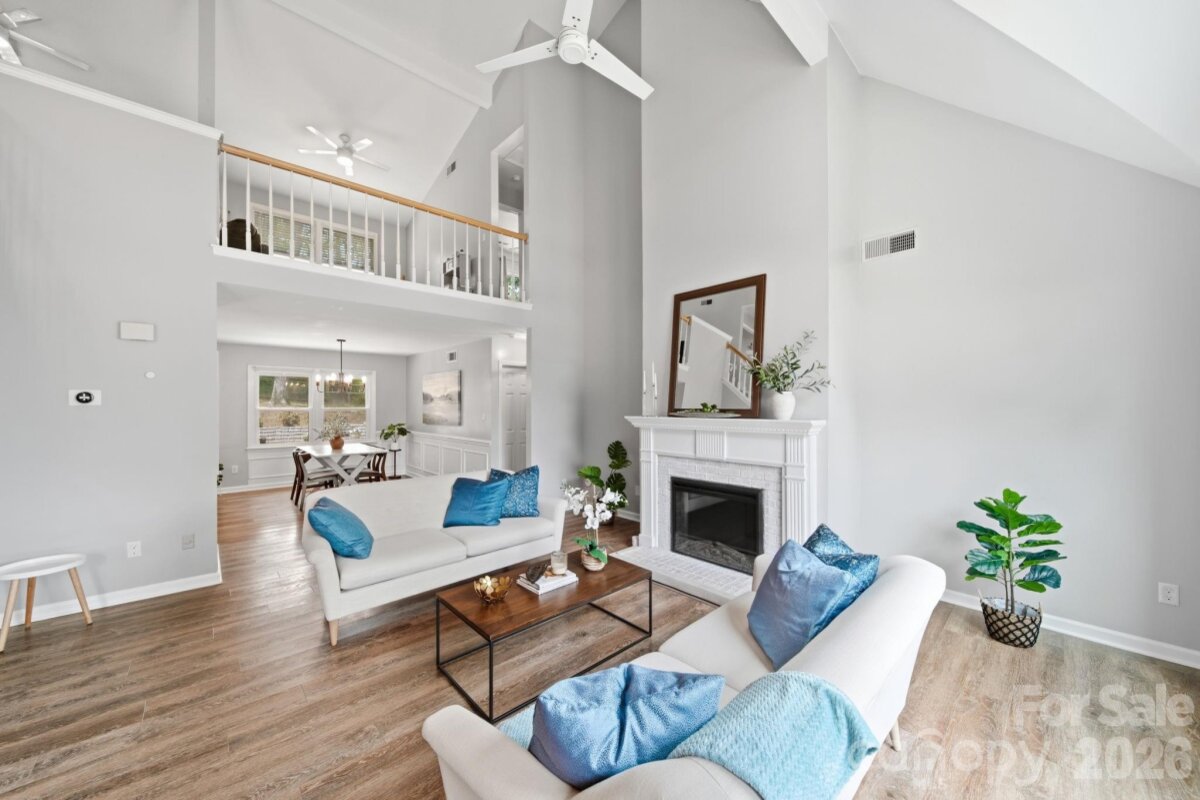 Beautifully maintained 4BR/2BA home in the heart of Ballantyne, tucked away on a quiet cul-de-sac and backing to woods for added privacy. Enjoy the convenience of being just minutes from shopping, dining, fitness and major roadways... with the bonus of walking distance to Endhaven Elementary and Ballantyne Ridge High School. The open floor plan with soaring ceilings creates a bright, inviting space perfect for everyday living and entertaining. A main-level primary suite offers comfort and accessibility, while upstairs provides additional bedrooms and flexible living space. Recent updates include granite kitchen countertops, an expanded patios with retaining wall, a 2018 roof with transferable 30-year warranty, and all appliances replaced in 2023 (including refrigerator with dual ice makers), which convey with the home. Enjoy life in one of Ballantyne's most desirable locations.
