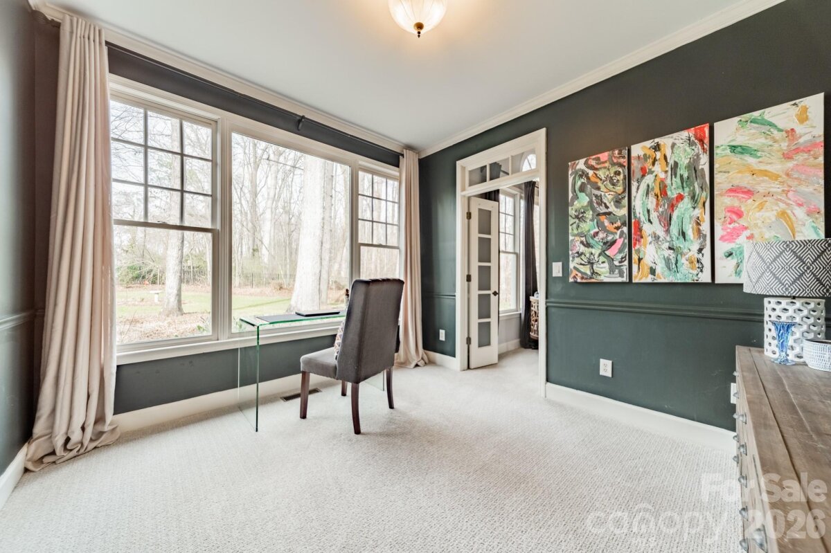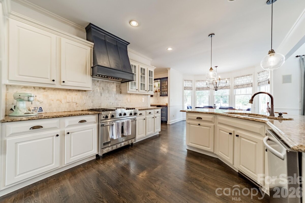 MULTIPLE OFFERS HAVE BEEN RECEIVED. PLEASE SUBMIT YOUR HIGHEST AND BEST OFFERS BY MARCH 9th at 12pm. Located in the highly sought after Hamptons neighborhood in Huntersville, this Charleston-inspired home with double front porches sits on one of the most desirable lots in the neighborhood — a quiet cul-de-sac backing directly to North Mecklenburg Park, ensuring complete privacy. Set on nearly half an acre, the backyard is a true retreat with a beautiful tree-lined backdrop. Professionally enhanced with extensive landscaping, full irrigation and completely fenced the outdoor space was thoughtfully designed for both beauty and function. A stunning 1,000 sq ft stone patio anchors the yard and connects seamlessly to the deck and screened porch — creating multiple spaces to gather, relax, and entertain. Inside, hardwood floors span the main level and lead to a thoughtfully updated interior featuring custom trim details, designer lighting throughout, and a beautifully enhanced fireplace surround. The kitchen has been elevated with a custom vent hood, new backsplash, and a built-in beverage center — blending style and everyday functionality. The main-level primary suite offers convenience and privacy, while a dedicated office just steps away provides the ultimate “office with a view,†overlooking the expansive backyard. Upstairs, the secondary living spaces shine. Two full bathrooms have been completely remodeled, three bedrooms feature custom design upgrades, and a massive bonus room offers flexibility for media, play, fitness, or additional living space. Even the powder room and laundry room have been renovated with thoughtful detail, and the mudroom now includes custom wardrobe storage for streamlined organization. Beyond aesthetics, the major systems have been comprehensively addressed. In recent years, the home has received new furnaces & A/C units, water heater, new carpet, fresh interior paint, new exterior paint and enlarged black gutters with guards — offering true peace of mind. This home offers timeless architecture, modern design updates, and rare park-backed privacy in one of Huntersville’s most desirable communities. 3 car garage! Welcome Home!