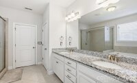 WOW! This stunning home is located in a highly sought-after community and is loaded with upgrades throughout—truly shows like a model home! Step inside to find gorgeous flooring and an inviting open floor plan designed for modern living and entertaining. The chef’s dream kitchen features a huge island with breakfast bar, granite countertops, stainless steel appliances, gas range, recessed lighting, tiled backsplash, and large corner pantry. The sun-filled dining area flows seamlessly into the spacious living room with a cozy fireplace, all overlooking the fenced backyard. The primary suite on the main level is a true retreat, complete with a tray ceiling and spa-like primary bathroom offering a beautifully tiled shower, garden tub, dual vanities, and a huge custom walk-in closet that conveniently connects to the laundry room. Laundry Room has Built-in Cabinets & Folding Counter. A second bedroom and full bathroom are also located on the main floor—perfect for guests or a home office. Upstairs, you’ll find two more large bedrooms, another full bathroom, and a spacious bonus room/loft ideal for a media room, playroom, office or additional living space. Additional features include a whole-house air purifier for enhanced comfort. Enjoy outdoor living in the fenced backyard with patio, perfect for relaxing or entertaining. Community amenities include a pool, park, and walking trails. Prime location with easy access to shopping, dining, Monroe Bypass, and Hwy 74. This home is a must-see!