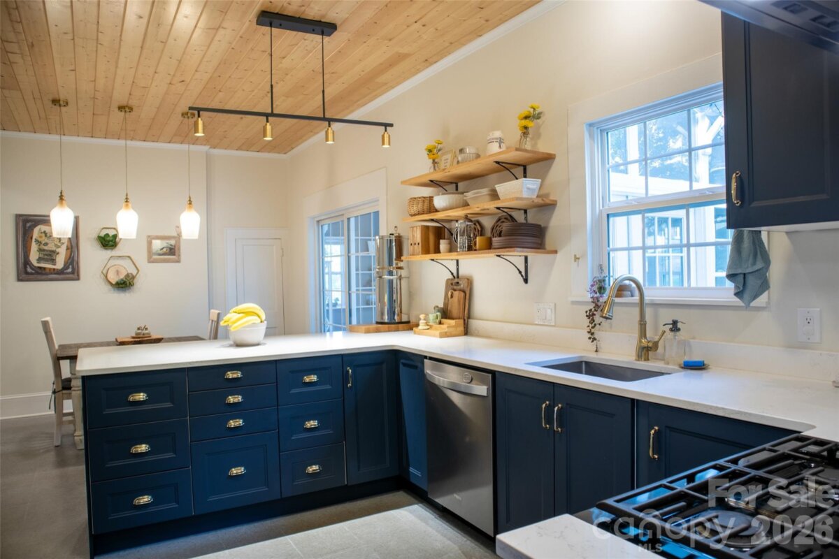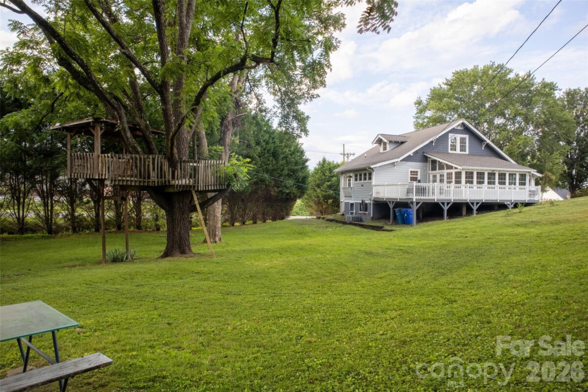 Character-filled home on a spacious lot just minutes from downtown Morganton. A welcoming front porch leads into a large living room with soaring ceilings and original hardwood floors that highlight the home’s historic charm. The remodeled kitchen features new cabinetry, quartz countertops, updated appliances, new subflooring, and elegant fixtures. The main level includes a large dining area, oversized sunroom filled with natural light, laundry room, cozy parlor, and a flexible bonus room ideal for an office, guest room, or creative space. A full bath with classic clawfoot soaking tub and separate shower completes the main level. Upstairs are three comfortable bedrooms and a convenient half bath. Enjoy the private backyard retreat with a spacious deck, tree fort, and charming rustic cabin with front porch and sleeping loft—perfect for guests, studio, or workshop. Crawlspace includes workshop, utility sink, storage, and well on property (home uses city water). New roof and gas tankless water heater installed in 2024.