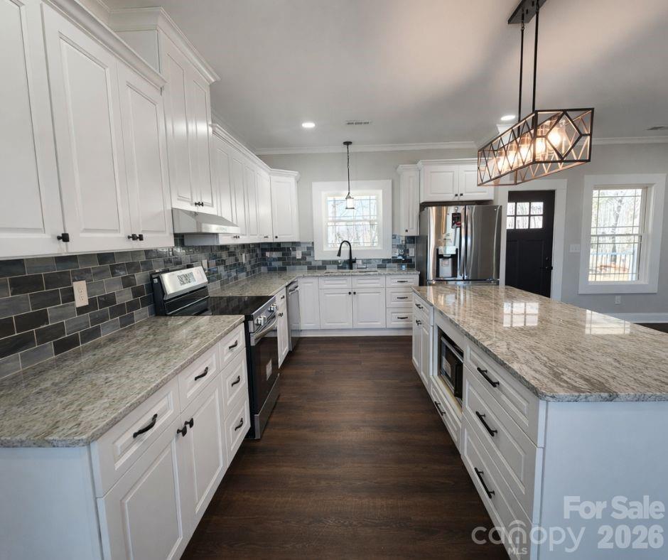 Welcome to country living with a modern twist! Just down the road from Burns Middle and High School, this brand-new home combines the best of rural charm with today’s most desired upgrades. Situated on a large 1.5-acre level lot, the property offers endless outdoor potential—plenty of room for a pool, gardening, or simply enjoying the peace and privacy from your spacious covered rear porch. Inside, the open-concept floor plan is designed for both style and function. The chef’s kitchen features upgraded cabinetry, granite countertops, and premium finishes that flow seamlessly into the dining and living areas, highlighted by a cozy fireplace. This 3-bedroom ranch home is anchored by a luxurious primary suite, complete with a large walk-in closet and a spa-inspired ensuite bathroom boasting a sizable tiled shower. Additional highlights include: Oversized side-load 2-car garage with a spacious driveway for ample parking Elegant finishes throughout Versatile layout perfect for everyday living or entertaining If you’re searching for the perfect balance of modern living in a country setting, this home is a must-see. Come experience it in person—you won’t be disappointed!