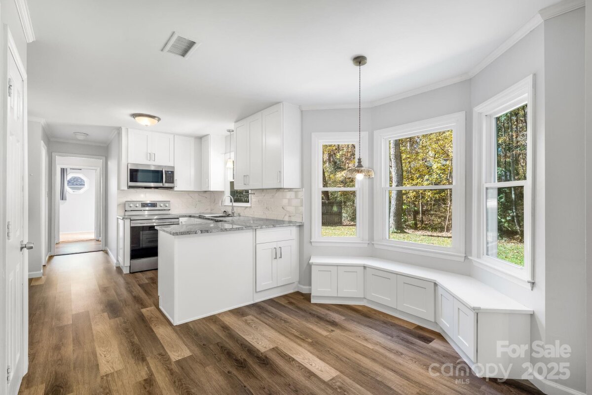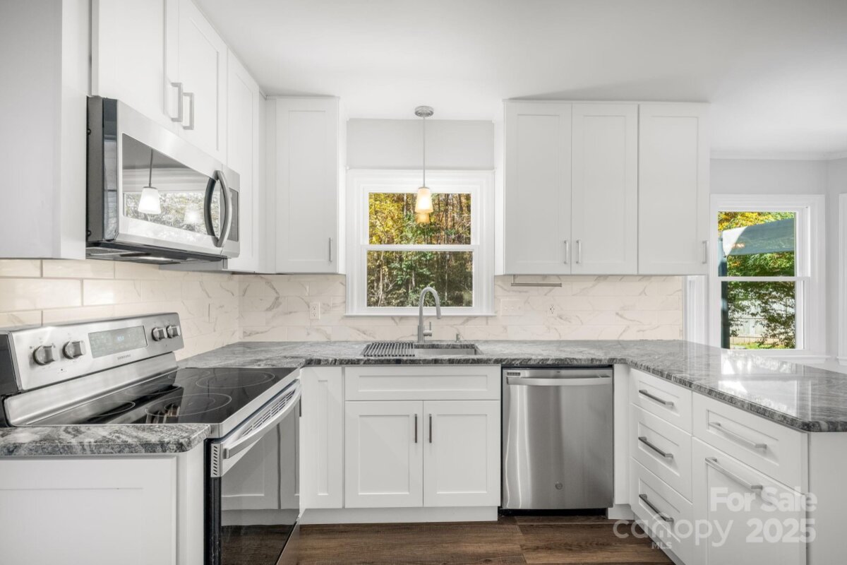 Welcome to beautiful 102 Schuyler Drive, loaded in upgrades and situated on a large .40 acre lot surrounded by mature trees in the popular Shepherds Vineyard neighborhood of Huntersville! Imagine entertaining in your brand new kitchen complete with new soft close cabinets, gorgeous new granite ctrs, new stainless appliances, new LVP floors, new farmhouse sink and breakfast area w/ new custom built-in bench. And that is just the beginning, the sellers have completed the following upgrades all within the last 5 years: full KITCHEN remodel, new APPLIANCES, new HVAC, new WINDOWS, new ROOF, updated ALL BATHS, exterior PAINTED, refinished DECK, added PATIO, new FRENCH DOORS, New Toilets and more! At the end of the day, relax in the large living room w/ "distressed" hardwood floors and cozy fireplace w/ gas logs. The main floor also features a separate dining room w/ hardwood floors, adorable updated powder room, home office/flex room, laundry closet & storage closet, while french doors lead you to the deck with pergola & patio overlooking the large backyard. Make your way upstairs to the oversized primary suite w/ tall cathedral ceiling, 2 closets & private full bath with beautiful tile floors, dual vanity & oversized garden tub. The secondary bedrooms are spacious in size w/ ample closet space and share the updated hall bath boasting new lighting, new vanity & new tile floors. Additionally they added landscaping, new gutters & gutter guards, removed trees, refurbished the fireplace and removed the popcorn & painted the downstairs ceilings. This home is located near downtown Huntersville with parks, dining, shopping, breweries, greenways, athletic facilities, tons of recreation and close to I-77, I-485 and in a sought after school district. Some great places include the Huntersville Fitness & Aquatic Center, Lake Norman & boat rentals, numerous golf courses, Huntersville Rec Center, Discovery Place Kids, Latta Nature Preserve, Rural Hill Farm, Birkdale Shopping Village, Frankie's Fun Park and lots of hiking, walking & biking options plus tons of sport options for all ages with soccer, baseball, pickleball and more!