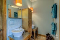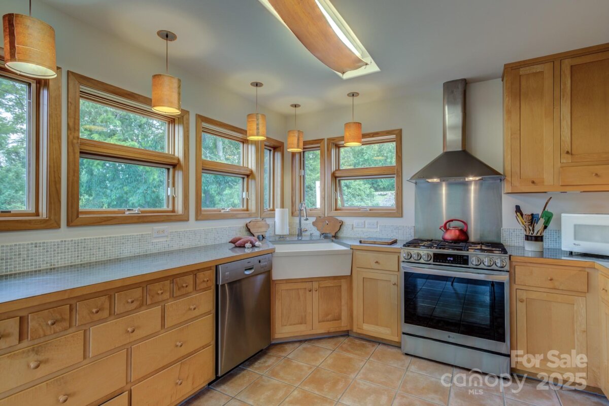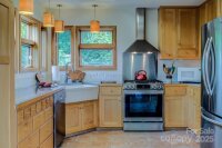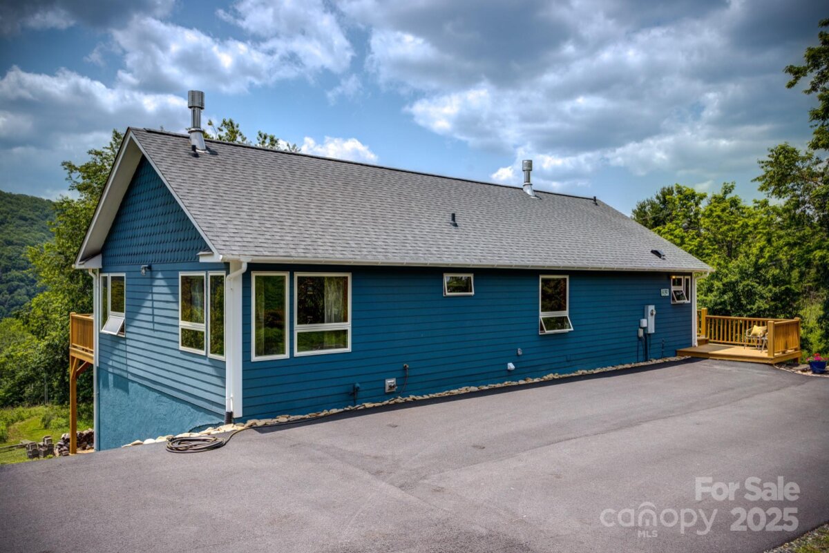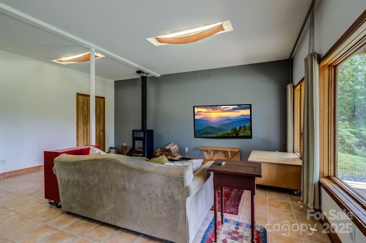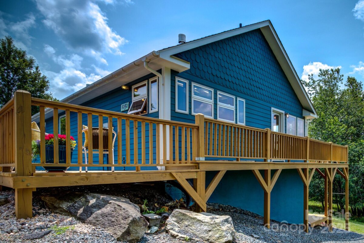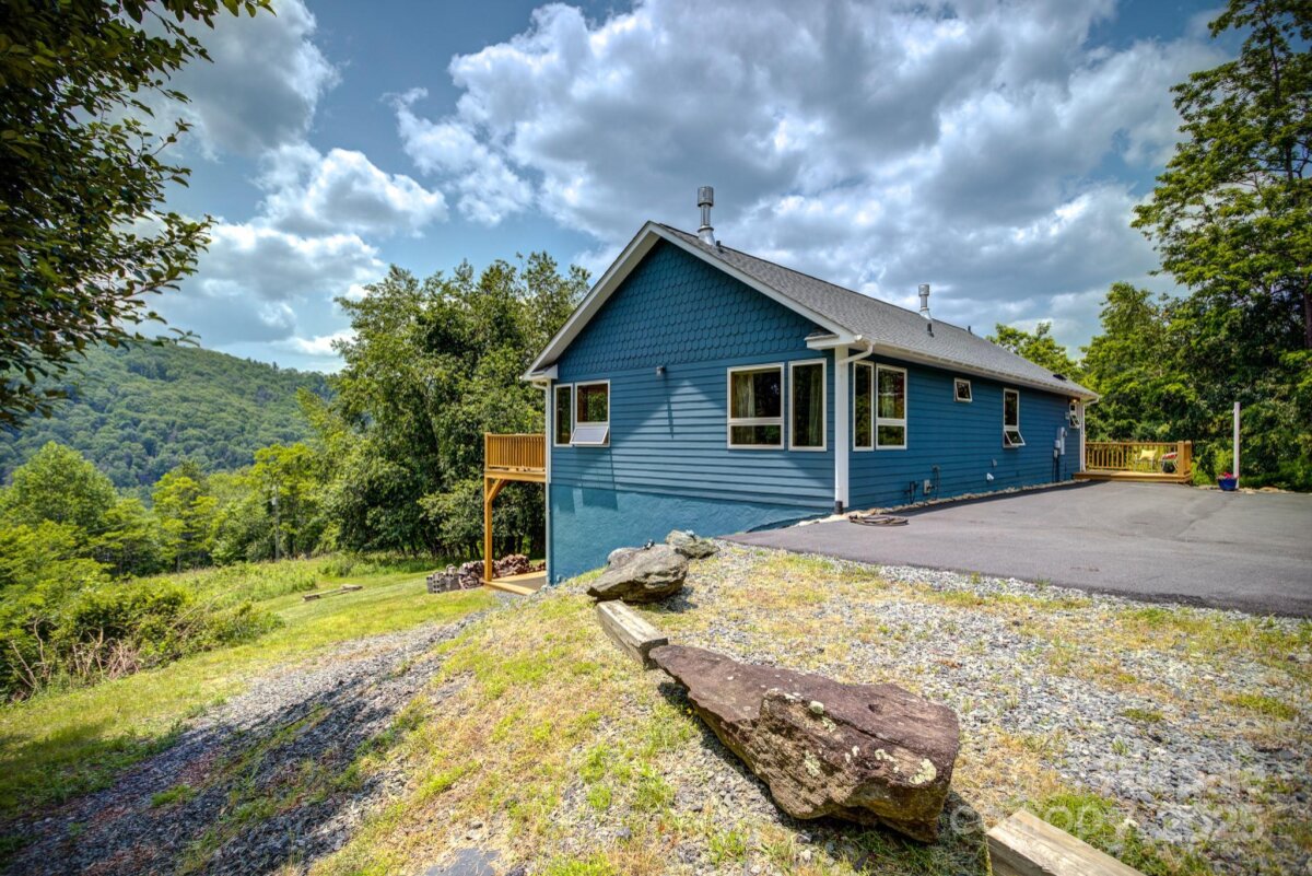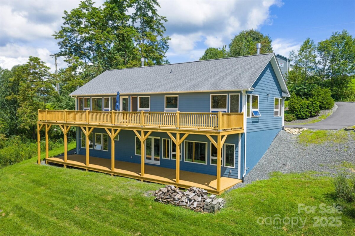 Nestled above the South Fork of the New River in Boone, NC, this energy efficient modern mountain haven boasts mountain and valley views from both levels. Abundant natural light and vaulted ceilings highlight the open concept living and dining area, which connects to a chef’s kitchen featuring stainless steel countertops, custom maple cabinetry, and a brand-new refrigerator and dishwasher (10/2025). Modern wood stoves on both levels create aesthetic focal points, with their warmth being complemented by radiant hot water heated floors. The main level offers two bright bedrooms, a full bath, and a dedicated office space for remote work or creative pursuits. Expansive decks on both floors accommodate seamless indoor-outdoor living, enjoy sunrise coffees and sunset cocktails. Downstairs, the primary suite offers a serene escape with a generous walk-in closet and full ensuite bath with double sinks. The downstairs family room invites you to gather for movie nights or casual lounging and is flanked by a half bath and hidden laundry area. French doors offer direct access to the lower expansive deck making this level as sun filled as the upper floor. Established Japanese garden entry on the upper-level wraps around to a generous backyard offering space for a future firepit, play area, garage, or workshop. The home was painted inside and out, along with the deck, in 2024, and the roof was replaced in 2023. Located in the well-established Raven Rock Meadows neighborhood composed primarily of full-time residents. Flexibility to offer short-term rentals adds investment potential for those seeking either supplemental income or a hybrid-use home. 20 minutes from downtown Boone, Watauga Medical Center, and Appalachian State University. Whether you’re seeking a primary residence, weekend getaway, or a vacation rental, this thoughtfully crafted retreat welcomes you home to the heart of the High Country.
