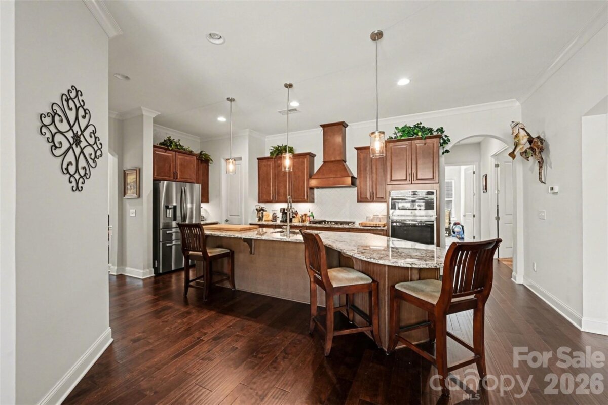 Welcome to this beautifully designed 4-bedroom, 3-bath ranch home that perfectly blends comfort, functionality, and modern style. From the moment you step inside, you’ll appreciate the thoughtfully crafted open-concept layout, ideal for both everyday living and entertaining. The main living area features elegant crown molding and flows seamlessly into a spacious kitchen equipped with stainless steel appliances, a built-in microwave and oven that also functions as a convection oven, and a large breakfast bar. Whether you’re preparing meals or gathering with guests, this kitchen is designed to impress. You’ll also enjoy the convenience of not one, but two walk-in pantries, offering exceptional storage and organization. Adjacent to the kitchen is a bright eat-in area, as well as a formal dining room perfect for hosting special occasions. The inviting living room showcases a beautiful fireplace with built-in wiring for easy TV mounting, creating a cozy yet modern focal point. The primary suite and additional bedrooms provide ample space and comfort, while the home’s three full bathrooms are thoughtfully appointed. A well-equipped laundry room offers extra pantry/storage space for added convenience. Step outside to the screened-in deck, an ideal spot to relax or entertain year-round. This space is complete with extra power outlets, is plumbed for a gas grill, and wired for a ceiling fan—perfect for outdoor gatherings. Additional features include an extended garage with durable epoxy flooring, a separate electrical panel ready for a generator, and a tankless water heater for energy-efficient, on-demand hot water. The walk-in crawl space provides even more accessible storage. This home truly has it all—modern upgrades, practical features, and beautiful finishes—ready for you to move in and enjoy.