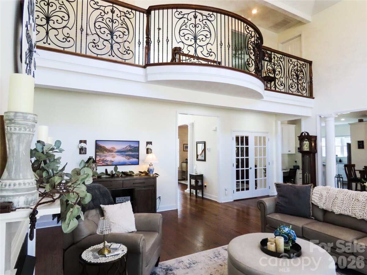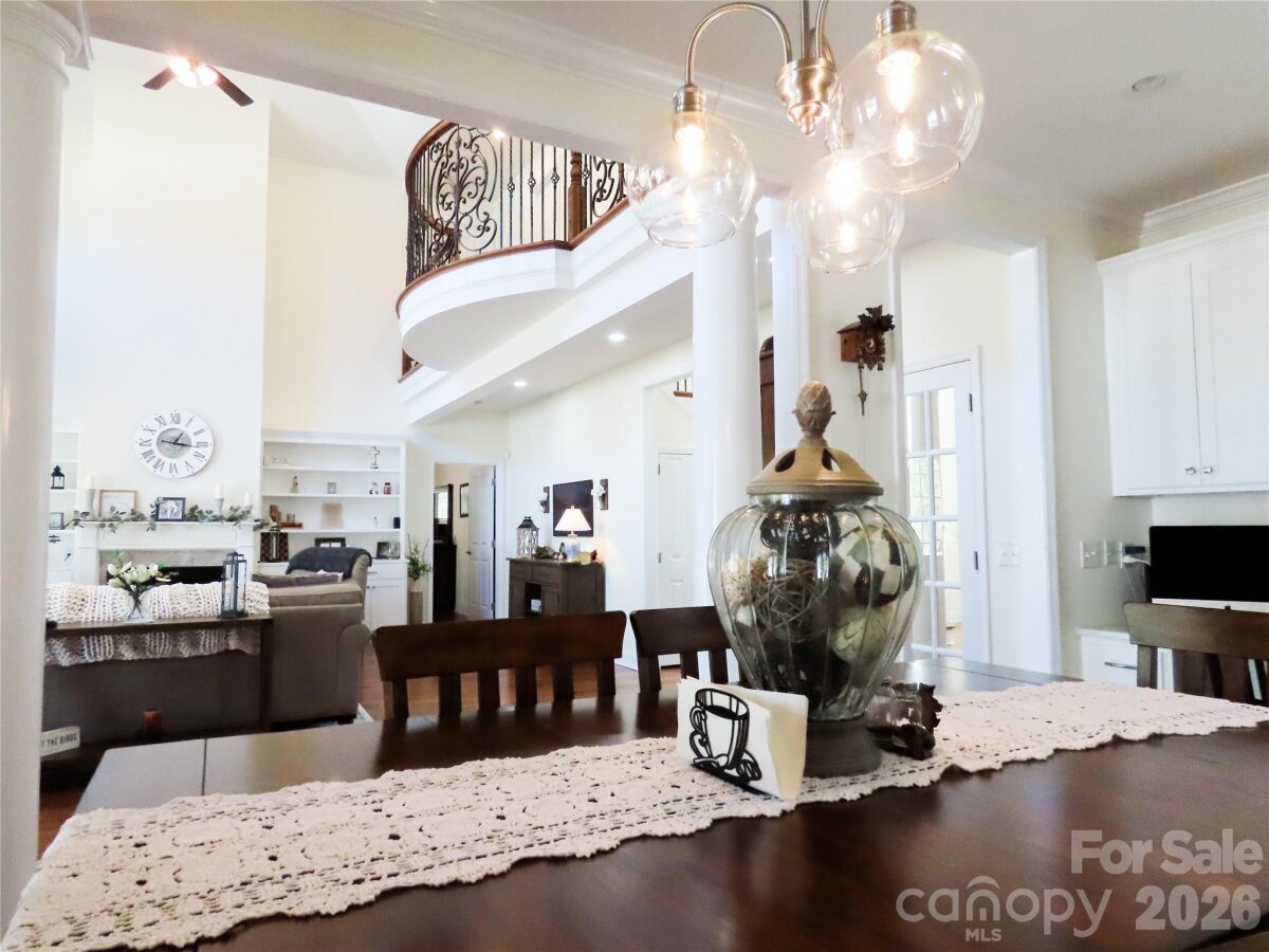 Peaceful, private, and beautifully positioned on 2 acres, this custom-built home offering 3,292 sq ft, 4 bedrooms, and 3.5 bathrooms delivers the perfect blend of space, comfort, and elevated living. Enter through the charming covered front porch and custom front doors into a light-filled interior featuring a dramatic 2-story foyer, elegant architectural details, and a stunning Juliet balcony. Wide plank hardwood flooring flows throughout the main living areas, leading into a spacious great room with a cozy gas fireplace, built-ins, and abundant natural light. The kitchen is both functional and stylish with granite countertops, a center island with breakfast bar, gas cooktop, wall oven, and designer tile backsplash—perfect for everyday living or entertaining. A separate dining room enhances the layout for hosting. On the main level, you’ll find a flexible bedroom and full bath, ideal for guests, a private home office, or study space. The main-level primary suite is a true retreat, featuring generous storage, dual vanities, a separate tub and shower, and access to the screened porch—perfect for quiet mornings or relaxing evenings. Upstairs, you’ll find two secondary bedrooms plus a large finished bonus room over the full-size two-car garage, offering the perfect space for a media room, playroom, home gym, or additional living area. Step outside and enjoy your private outdoor oasis—complete with a new in-ground pool, expansive yard, and a dedicated RV shelter for your camper or recreational vehicles. The screened rear porch overlooks the peaceful acreage, providing both privacy and room to unwind. Additional features include a walk-in attic (unfinished), separate storage building, and an oversized two-car garage. Offered at $749,000, this property presents a rare opportunity to own a custom home with acreage, flexible living space, and upgraded outdoor amenities—all within convenient reach of Charlotte.