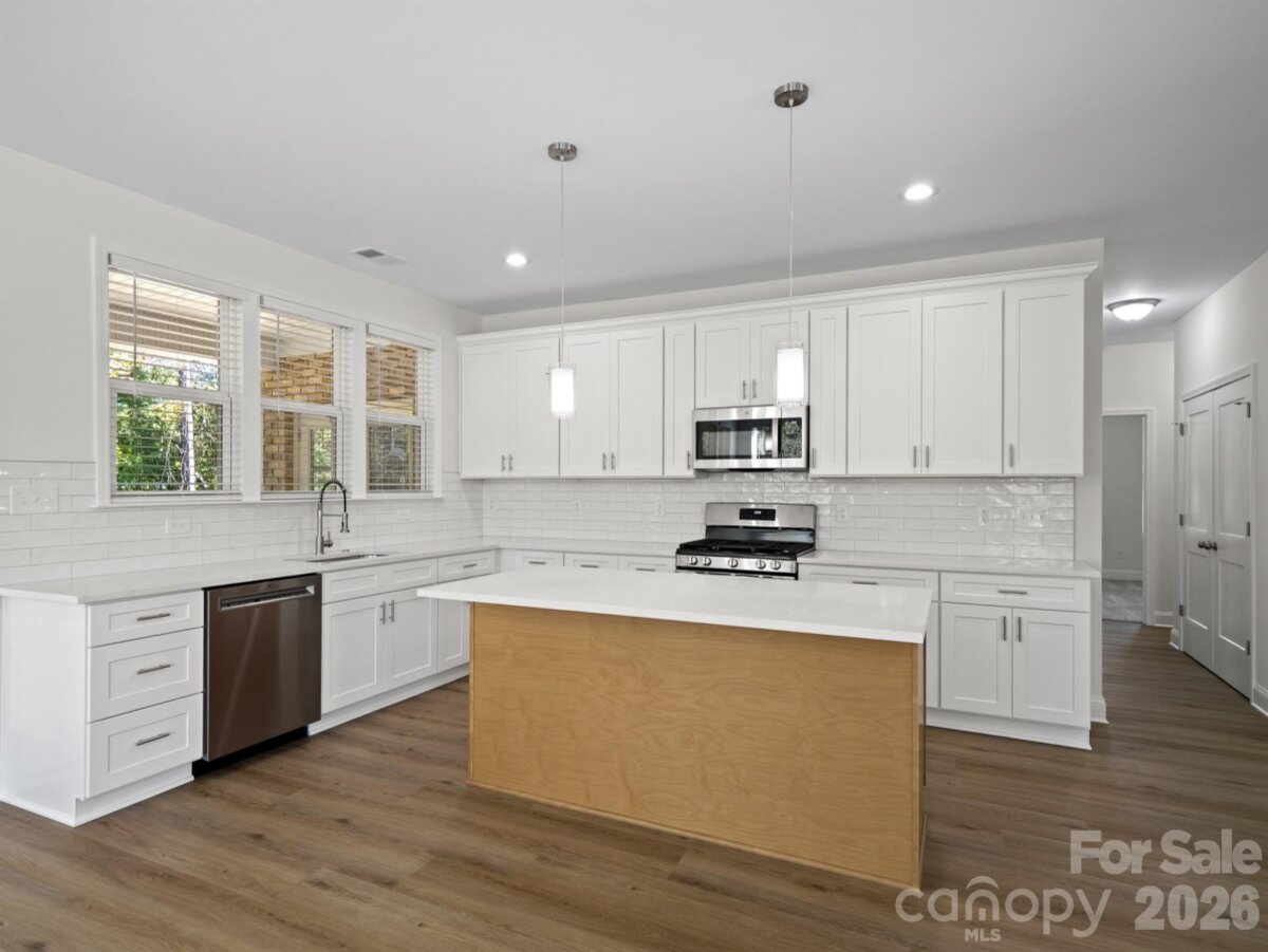 Welcome to this Beautiful/New Construction Home ln the All-Full Brick Community of College Place! This Perfect Open Floorplan offers 4 BR, 3.5-BA w/All bedrooms on the Main Level, plus a Private Office and Formal Dining Room! Complete with a butler’s pantry, wet bar, & abundant soft-close cabinets for storage. The gourmet kitchen features white soft-close cabinetry, a large island & quartz countertops, glossy subway tile backsplash, pendant lighting & SS appliances including a gas range/oven. The spacious family room is ideal for entertaining, highlighted by a Touchstone Smart Fireplace & French doors that lead to an enormous covered back porch with peaceful views of the surrounding trees. The Gorgeous Primary Suite includes private access to the back porch, dual quartz vanities, a large walk-in tiled shower, an expansive walk-in closet & a private entrance to the laundry room for added convenience. Additional features of this exceptional home include wide luxury plank flooring in all common areas, fully framed windows with 2" blinds throughout, Mud room w/granite seat & cubbies, ceiling fans in every bedroom & a large, French drains at all corners of the home, deep garage designed to accommodate full-size trucks & toys! The crawlspace is a tall space with plenty of room for extra storage and or even a workshop! With its blend of comfort, elegance & function, this beautiful, newly constructed home offers everything you could ask for in this quiet, established neighborhood.