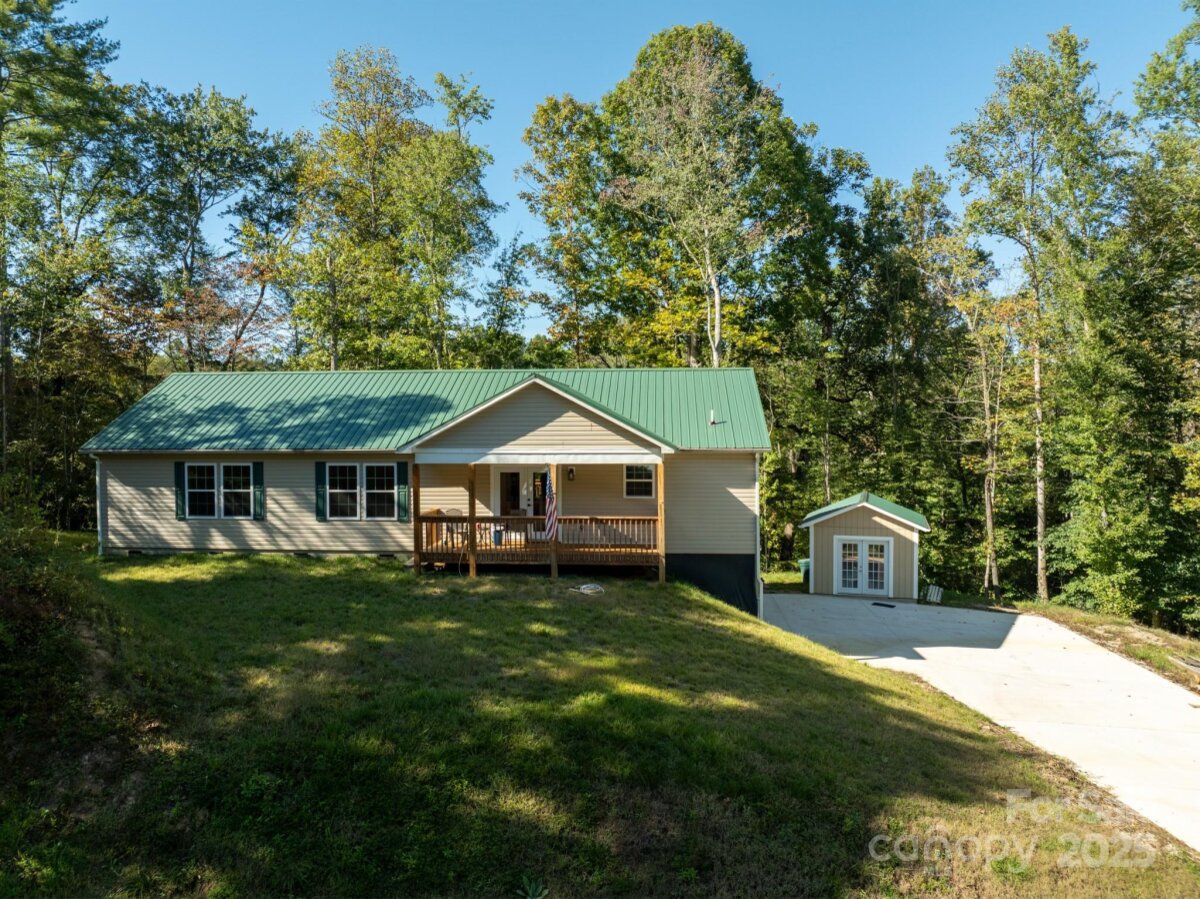 Newly built home bordering Lenoir Greenway--Custom touches with room to grow! Welcome to this beautifully crafted new build, perfectly positioned on a peaceful creek--great for those who appreciate both convenience and nature. Inside, you'll find 3 spacious bedrooms, 2 baths with a bathroom in the basement (just needs the sink connected), and a bonus room that can be used as a home office, dining. area or guest room. Every room features special design touches, from modern/rustic finishes to thoughtful layouts that bring both style and functionality. Enjoy the airy feel of vaulted ceilings, adding a sense of openness and light. The covered front porch and back deck provide great spaces for relaxing with coffee and a book. The oversize concrete driveway is great for guests or RV parking. NO HOA's. AT&T fiber optic cable is onsite. This home is a blank slate, ready for your personal style, offering custom construction and 1/2 basement 2-car garage with convenient walk-out door. 12x12 separate storage building wired and insulated with propane hookup. Plus, there's the unique opportunity to purchase the adjacent 1-1/2 acre lot--great for expansion, investment or extra privacy. A beautiful home priced to sell!