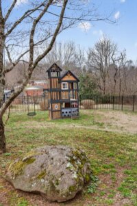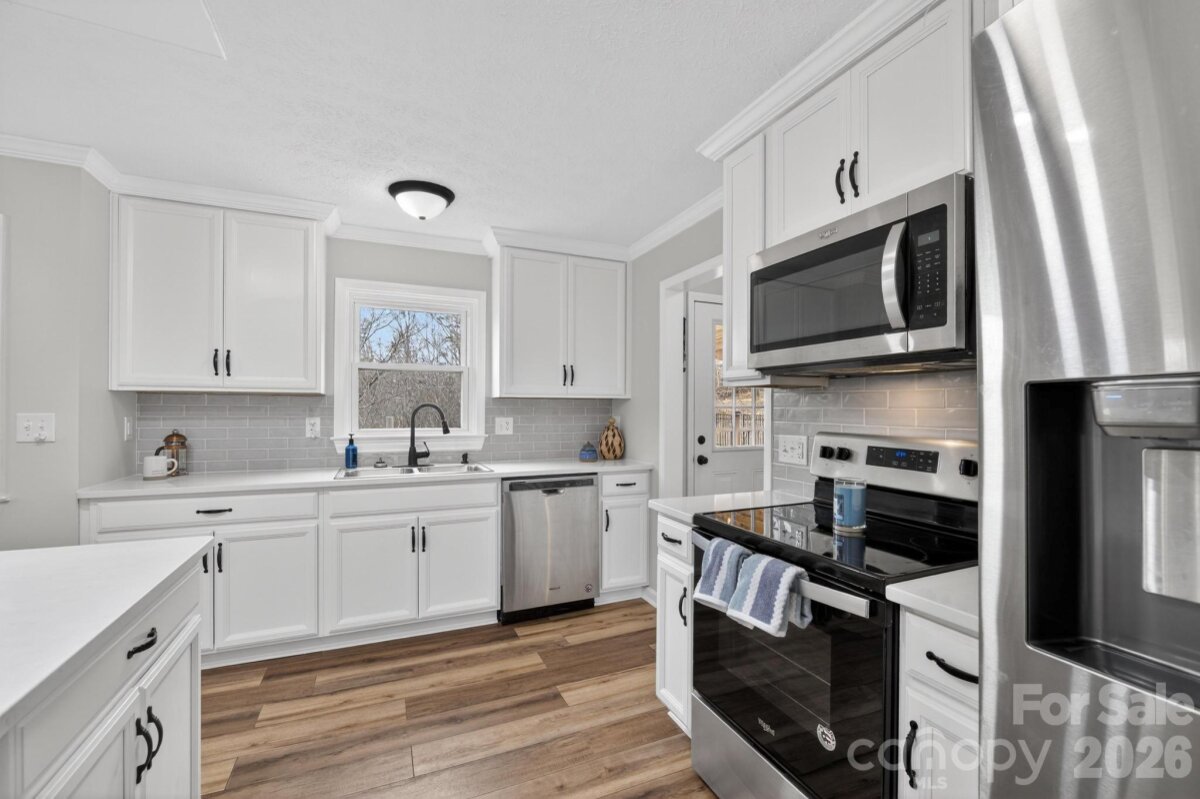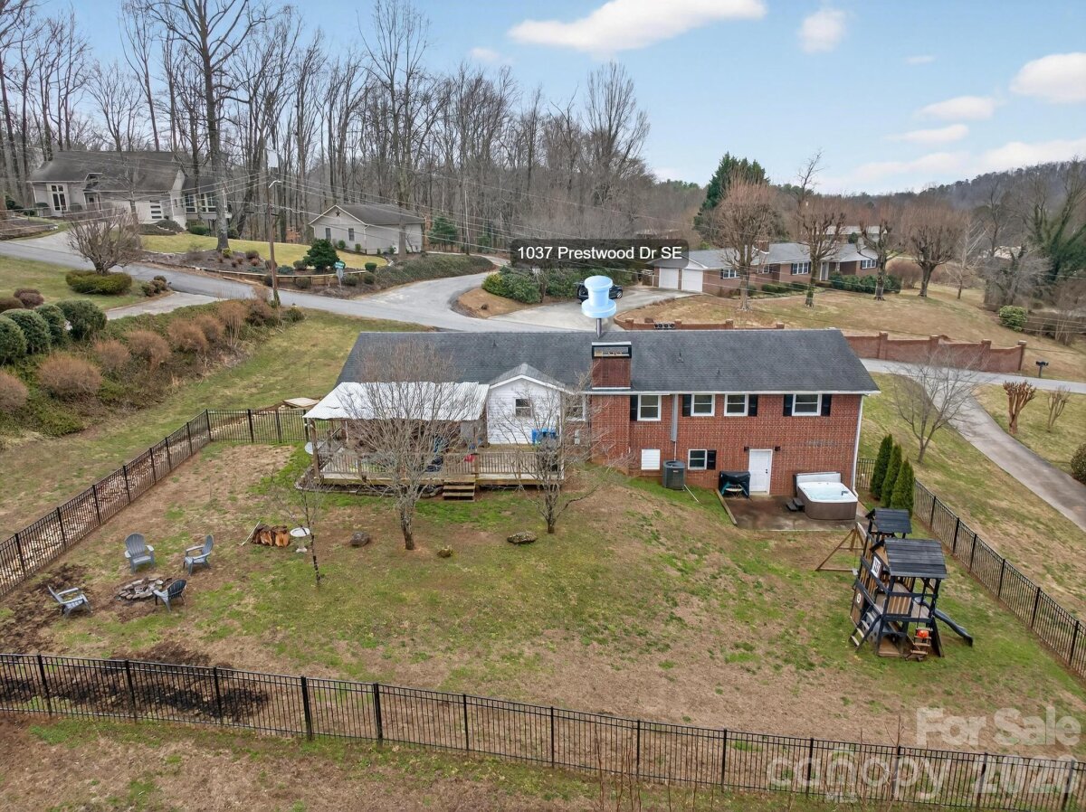 Welcome home to this well-maintained brick ranch in the Lower Creek area of Lenoir, NC. Situated on a generous 0.78-acre lot, this low-maintenance home offers potential for multigenerational living with a fully finished basement living area complete with kitchen and bathroom. The home has a total of 4 bedrooms and 3 full bathrooms, along with a 2-car garage featuring a storage room and a programmable cipher lock for added convenience. The fully fenced backyard is designed for both relaxation and fun, complete with a hot tub, playset, storage shed, firepit, extensive landscaping improvements, drainage enhancements, tree removal, and leveled yard areas. A huge covered porch provides the perfect space for outdoor gatherings year-round. Inside, you’ll find beautiful updates including quartz countertops, a new kitchen faucet, a large stainless refrigerator, and a washer and dryer conveniently located on the main level. With two wood-burning fireplaces, the home offers warmth and charm throughout. The fully finished basement includes a separate entrance, a full bathroom, and a kitchenette, creating excellent potential for multigenerational living or guest accommodations.