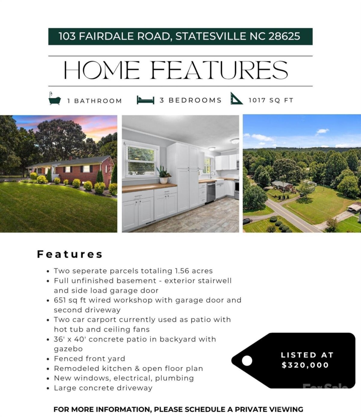Welcome to your own slice of paradise—an updated all-brick ranch on two parcels totaling 1.56 acres! Beautiful landscaping, mature trees, and outdoor living spaces make this property a true standout. Inside, enjoy a bright open floor plan with hardwood floors and a remodeled kitchen with white shaker cabinets, butcher block counters, SS appliances, and farmhouse sink. Main level offers 3 bedrooms and updated full bath. One bedroom previously converted to laundry room but easily returned to basement with hookups in place. Updates include new windows, electrical, plumbing, and a large driveway. The unfinished basement with side-load garage offers room for storage or finishing. Outdoor living shines with a covered patio/carport, hot tub, ceiling fans, and a huge 36x40 patio with gazebo. Plus, a 651 sq. ft. wired workshop with garage door, and dual driveways. The second flat parcel is perfect for expansion. Conveniently located near interstates, shopping, and dining!