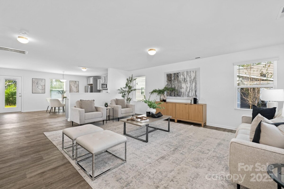 Corner Lot! Step into this spacious home and be welcomed by an expansive open-concept Great Room, ideal for entertaining or relaxing. The oversized L-shaped kitchen offers abundant cabinetry and prep space. A versatile flex room on the main floor provides the perfect spot for a home office, creative studio, or separate lounge area. Upstairs, retreat to the generous Primary Suite featuring a large en-suite bath and walk-in closet. Three additional well-sized bedrooms, a full bath, and a conveniently located laundry room complete the second level, offering comfort and functionality throughout. Home includes kitchen appliances, including refrigerator as well as washer and dryer. Convenient to Lake Norman State Park, Downtown Statesville, Troutman, and Mooresville entertainment, dining, and shopping.