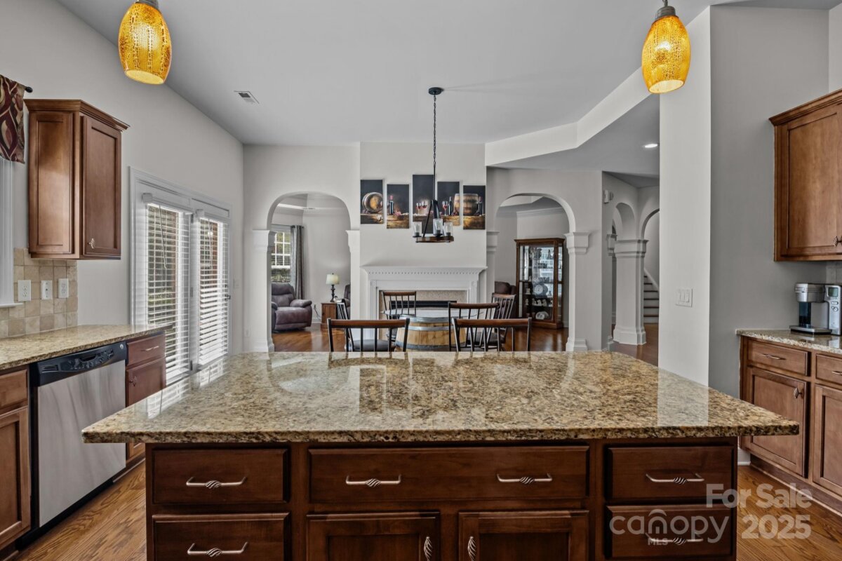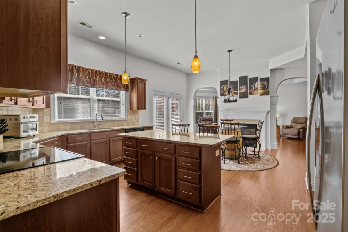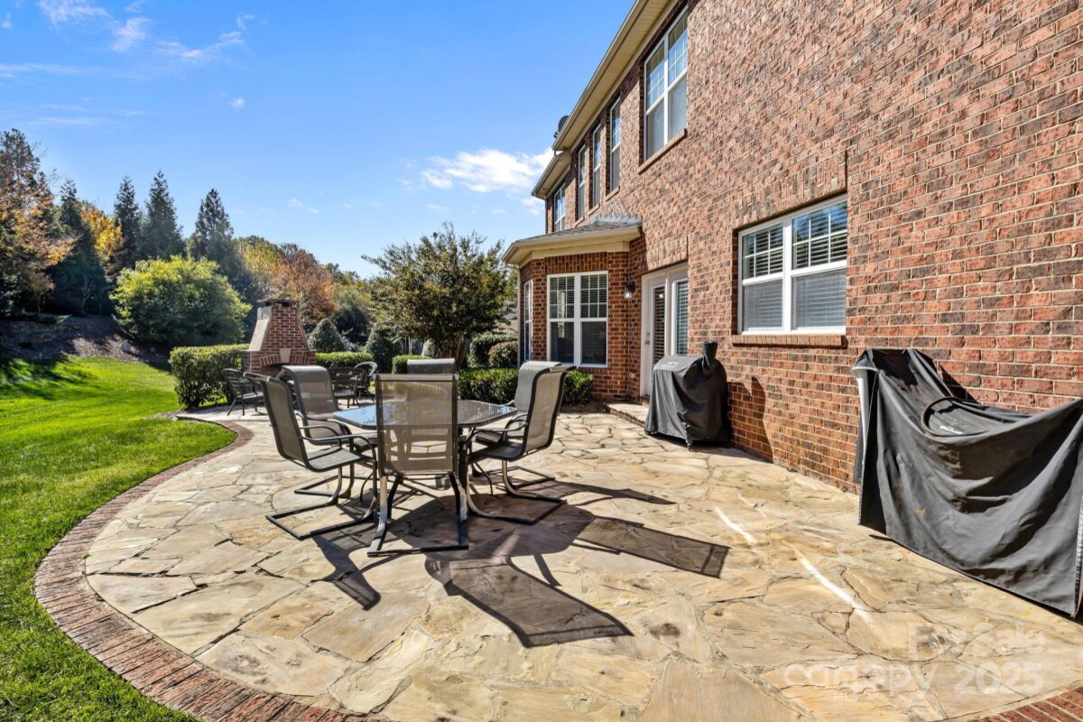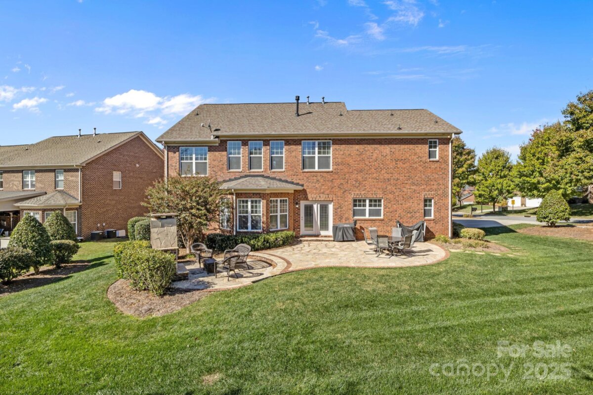 Stunning full-brick home in the desirable Northbridge subdivision! This meticulously maintained property offers exceptional quality and curb appeal, complete with a 3-car garage and beautiful outdoor living spaces. Step inside to a grand 2-story foyer with elegant molding details, crown molding, wainscoting, tray ceilings, and ceiling fans throughout. The open floor plan features a see-through gas log fireplace connecting the great room and breakfast area, plus a convenient drop zone in the mudroom. The gourmet kitchen is sure to impress with a center island, granite countertops, 42" maple cabinets, tile backsplash, and stainless steel appliances. A main-floor guest suite includes a private bath for comfort and convenience. Upstairs, the luxurious primary suite offers a sitting room, his-and-hers walk-in closets, and a spa-like bath with dual vanities and an oversized tiled shower and a laundry chute! Enjoy outdoor living on the stone patio with outdoor fireplace, overlooking the private, landscaped backyard. Additional features include a new roof (2018) with a 30-year warranty, Energy Star certification, balance of 30-year structural warranty, and full irrigation system. Fantastic location—close to the community pool, I-77, and award-winning MGSD schools!
