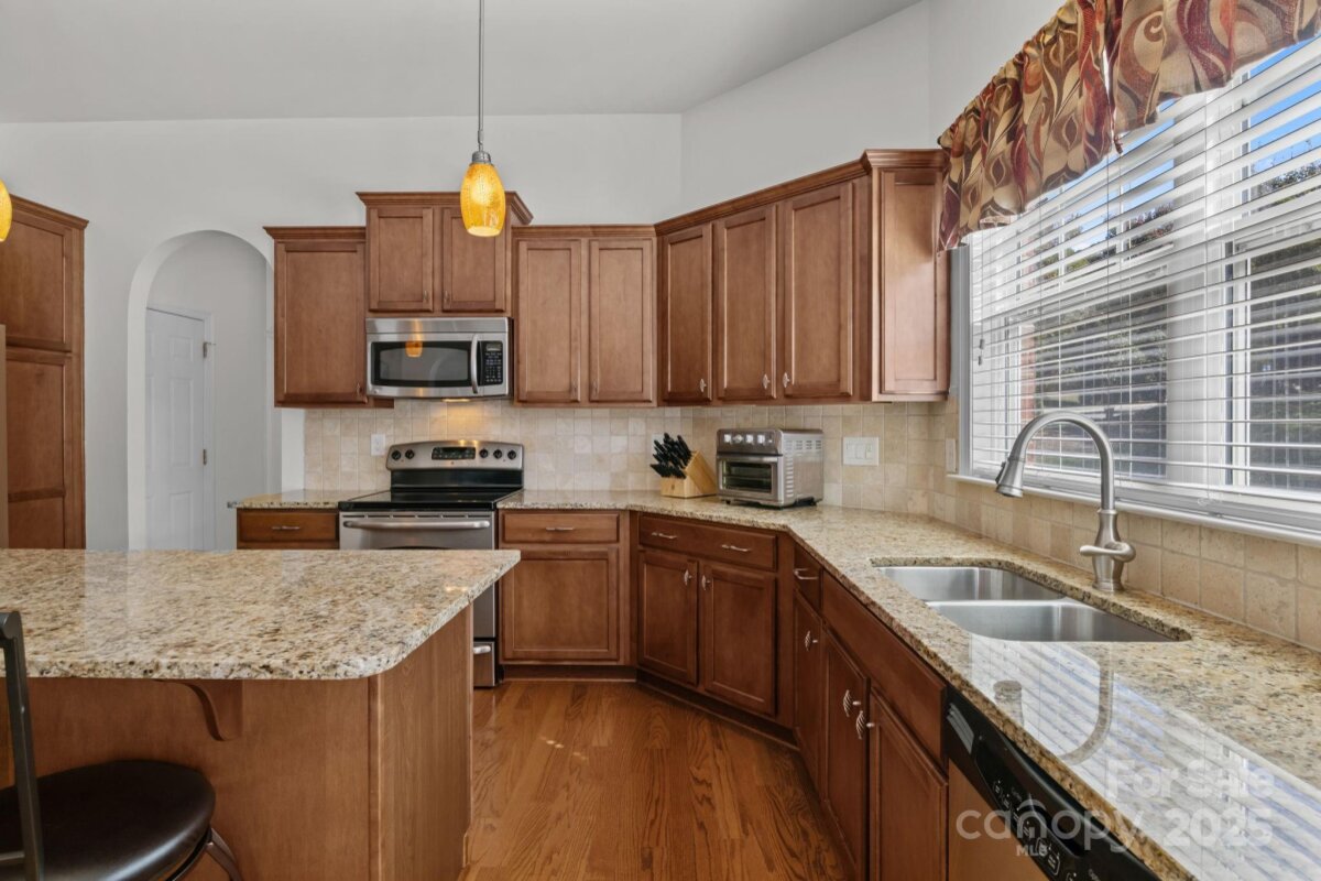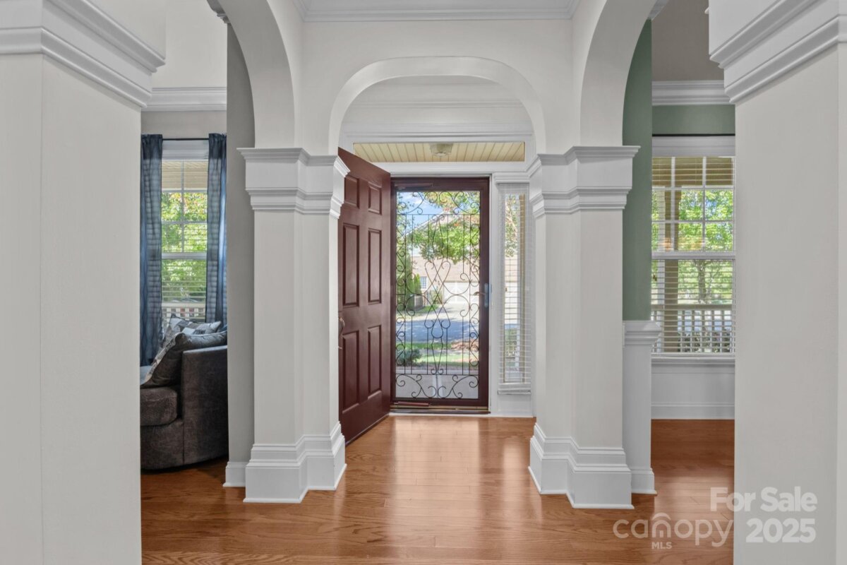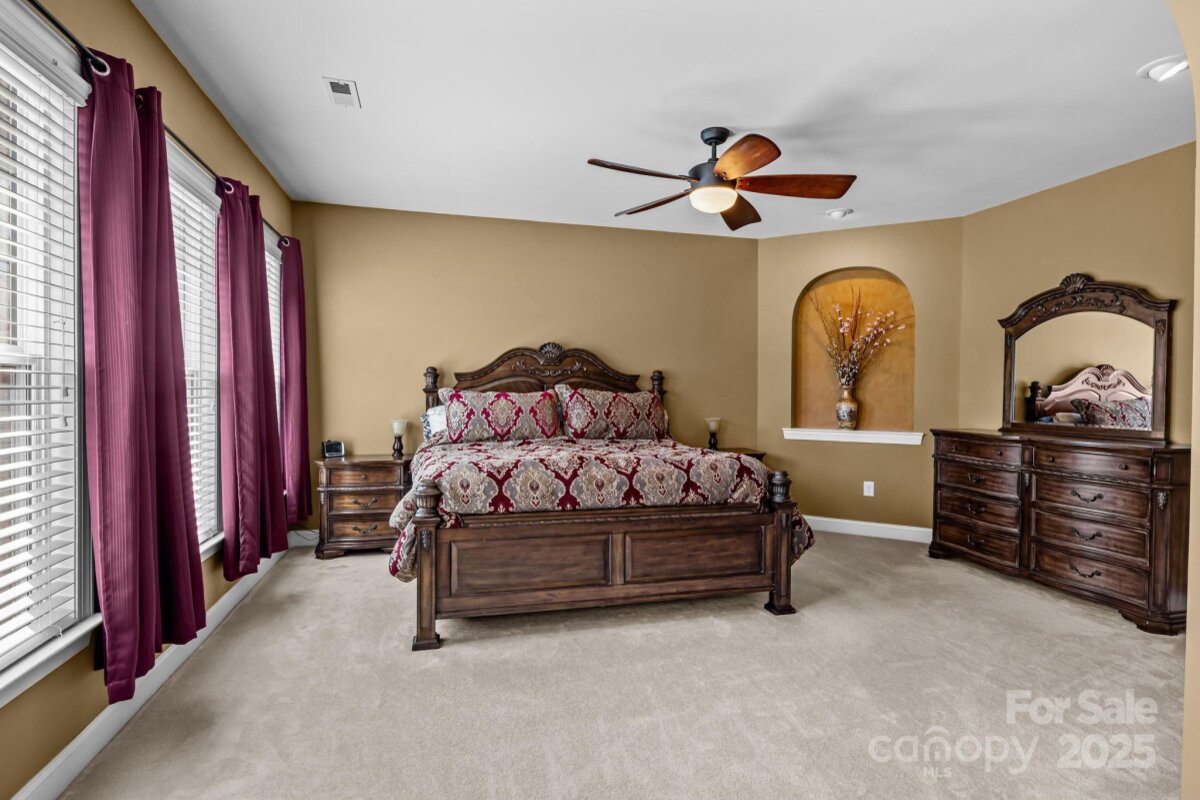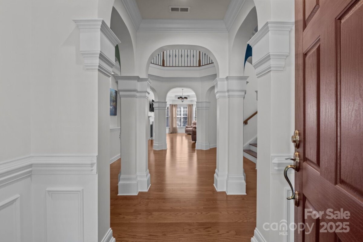 Stunning full-brick home in the desirable Northbridge subdivision! This meticulously maintained property offers exceptional quality and curb appeal, complete with a 3-car garage and beautiful outdoor living spaces. Step inside to a grand 2-story foyer with elegant molding details, crown molding, wainscoting, tray ceilings, and ceiling fans throughout. The open floor plan features a see-through gas log fireplace connecting the great room and breakfast area, plus a convenient drop zone in the mudroom. The gourmet kitchen is sure to impress with a center island, granite countertops, 42" maple cabinets, tile backsplash, and stainless steel appliances. A main-floor guest suite includes a private bath for comfort and convenience. Upstairs, the luxurious primary suite offers a sitting room, his-and-hers walk-in closets, and a spa-like bath with dual vanities and an oversized tiled shower and a laundry chute! Enjoy outdoor living on the stone patio with outdoor fireplace, overlooking the private, landscaped backyard. Additional features include a new roof (2018) with a 30-year warranty, Energy Star certification, balance of 30-year structural warranty, and full irrigation system. Fantastic location—close to the community pool, I-77, and award-winning MGSD schools!