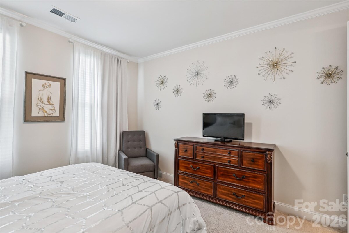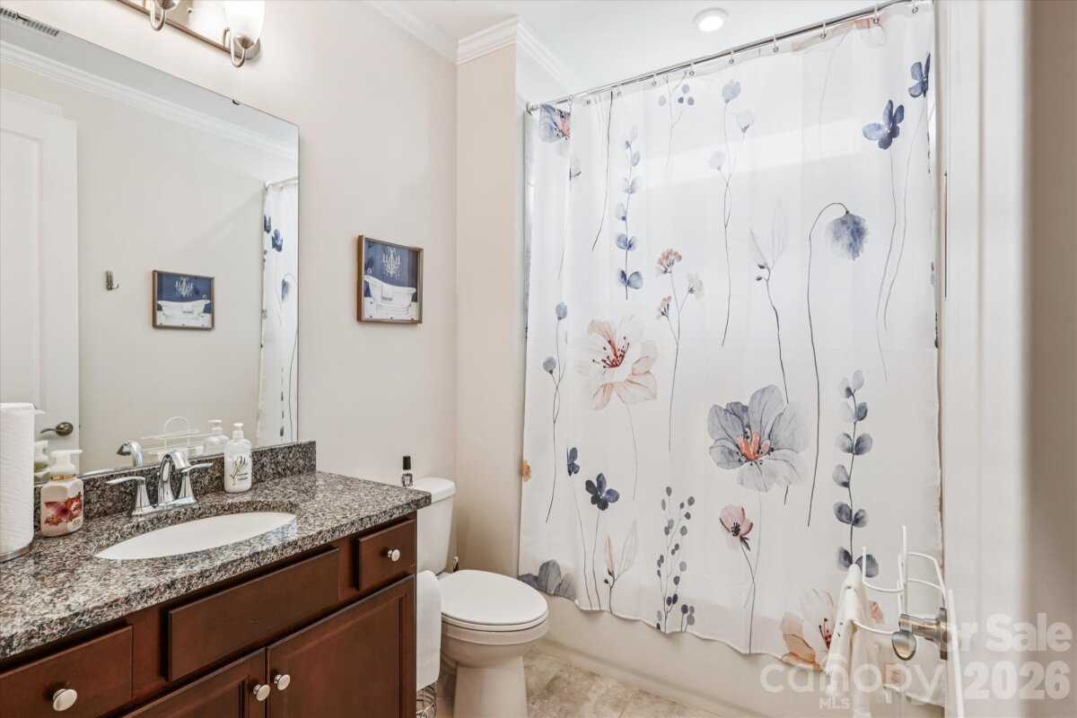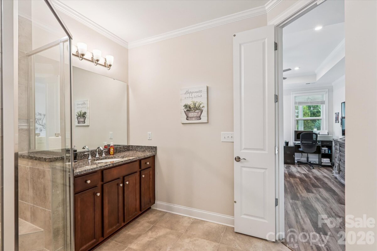 This beautifully designed two-bedroom, two-bath home blends timeless style with modern comfort. Elegant crown molding enhances most of the open-concept living space, while the light-filled great room flows seamlessly onto a spacious covered lanai with durable polyurethane flooring that’s perfect for relaxing or entertaining. The kitchen features granite countertops, a gas stove, stainless steel appliances, a center aisle, and plenty of cabinet space for both decorative and useful purposes. The primary bedroom is spacious and cozy, while the primary bathroom features a huge walk-in shower, closet, and dual sinks. A large two-car garage offers plenty of storage and daily suitability. Community amenities include a clubhouse/amenity center, a fitness center, indoor and outdoor pools, walking and biking trails, as well as tennis, pickleball, and bocce ball courts. This home provides the ideal balance of comfort, style, and convenience and is conveniently close to dining options, shopping, a hospital, and I-485. Make this jewel your haven!